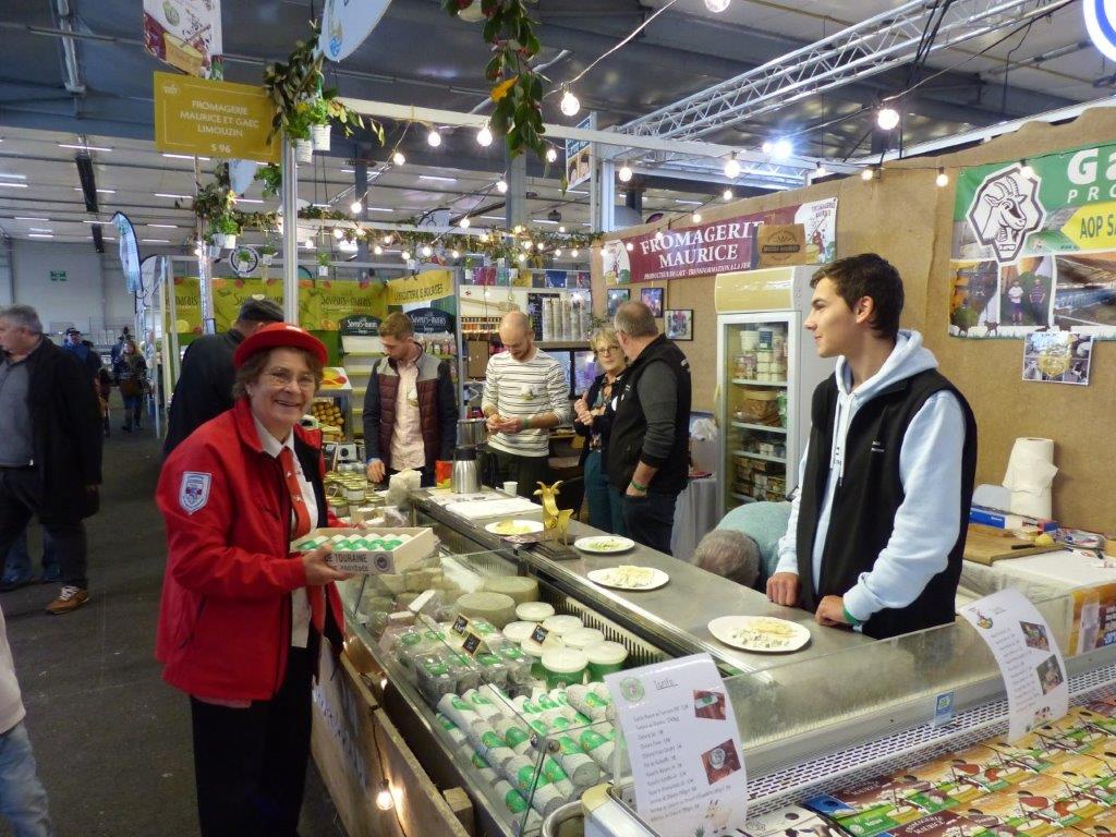 Samedi et dimanche, nous avons assuré la dégustation pas loin de nos fournisseurs de fromages, fromagerie Limouzin, fromagerie Vazereau, les laiteries de La Cloche d’Or et de Verneuil ce qui nous permettait de diriger les clients intéressés vers leur stand. Seule, celle de Verneuil ne vendait pas sur place mais faisait goûter ses produits laitiers sous le hall des animaux.