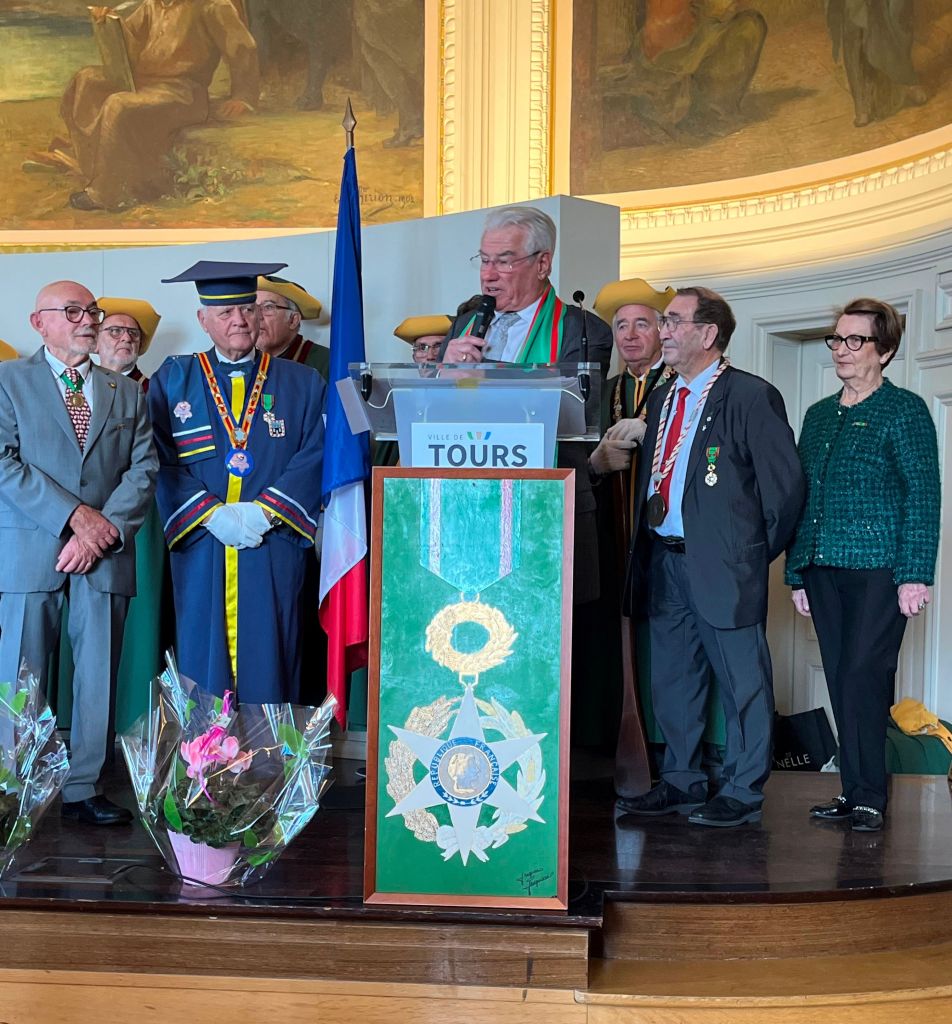 Samedi 3 décembre 2023, se tenait le 44ème chapitre de la Confrérie des rillettes et rillons de Touraine. Madeleine, Jean Ligeard et moi-même avons été accueillis dans les magnifiques salons de l’hôtel de ville de Tours.