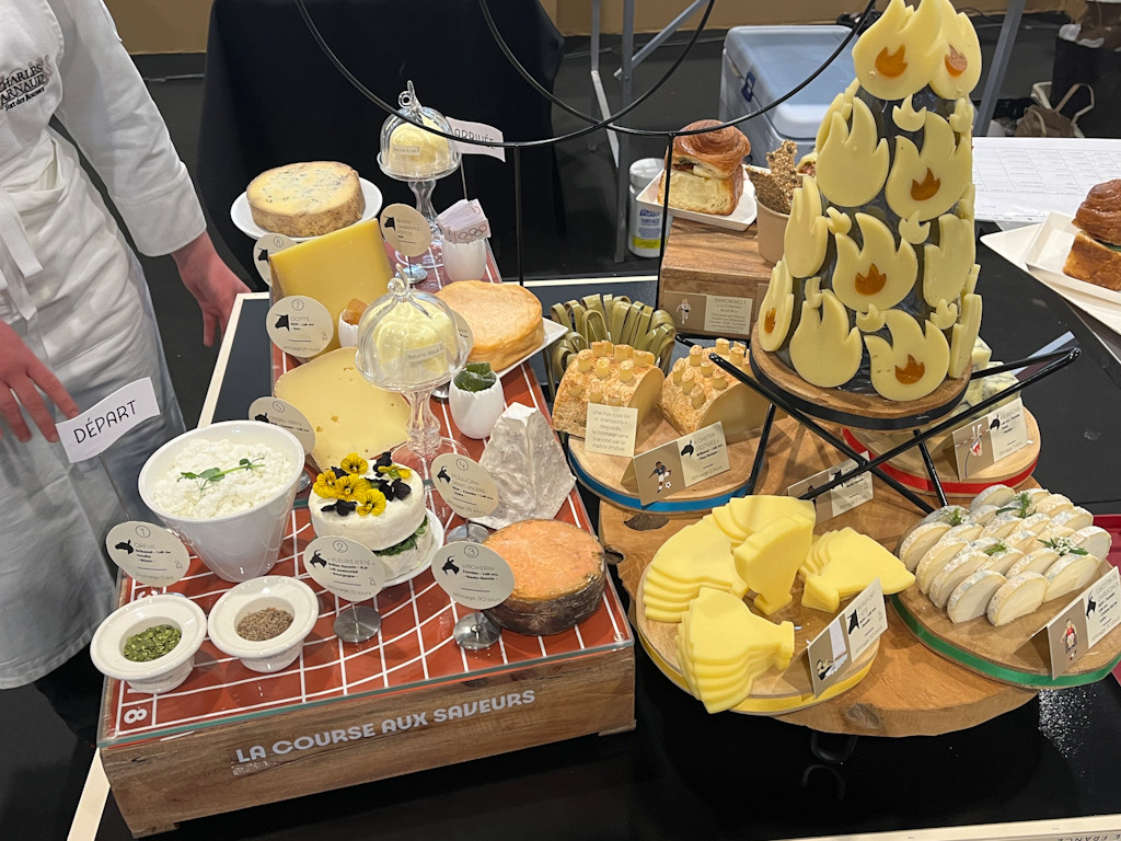 Dans l’après-midi, Madeleine, Martine et moi-même, nous nous sommes rendues au pavillon où se déroulait la 18ème édition du Salon du Fromage (réservé aux professionnels)et où avait lieu la 8 ème édition du concours de la Lyre d’Or qui récompense le savoir-faire dans La création d’un plateau de fromage. Cette année, le Concours portait sur le SPORT/FROMAGE. ( voir photos des 3 plateaux récompensés).