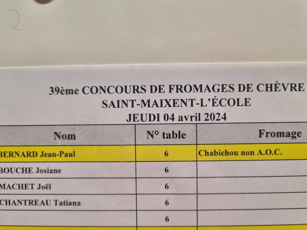 Concours de Fromages de Chèvres à Saint Maixent l’École (Deux Sèvres) le jeudi 4 avril 2024.
