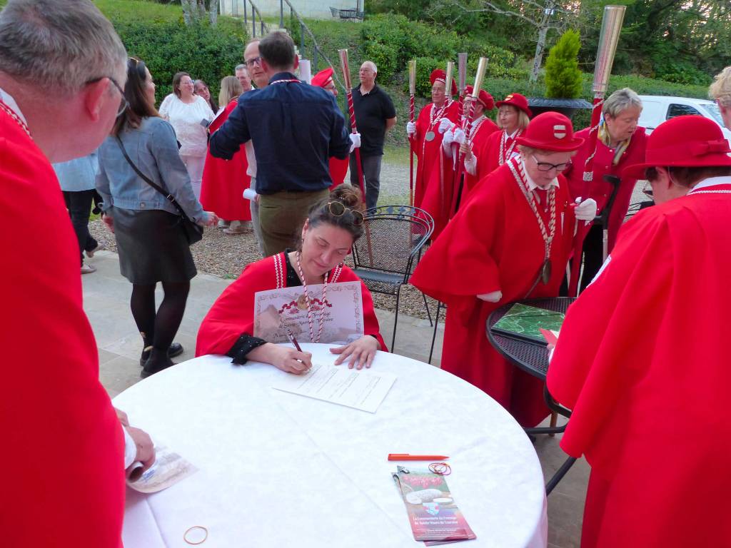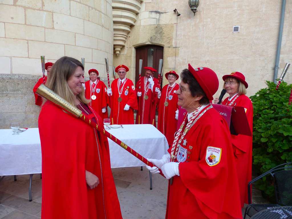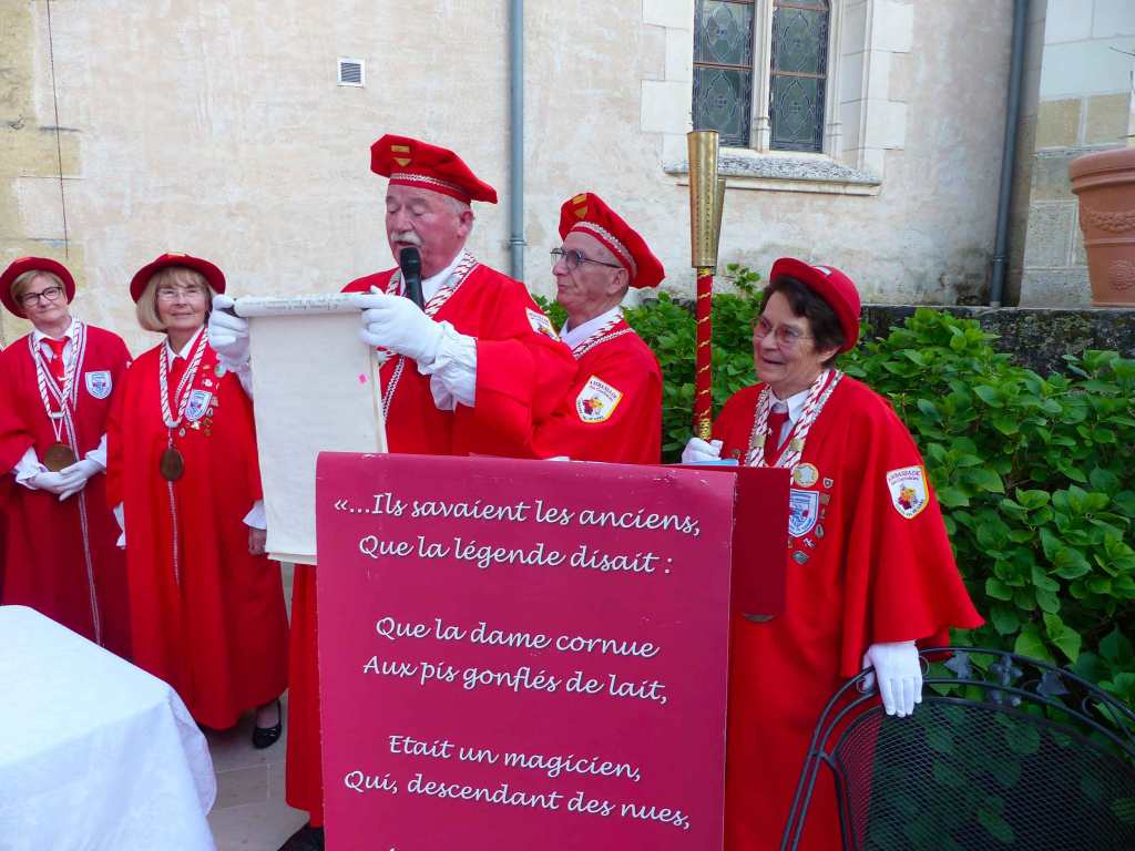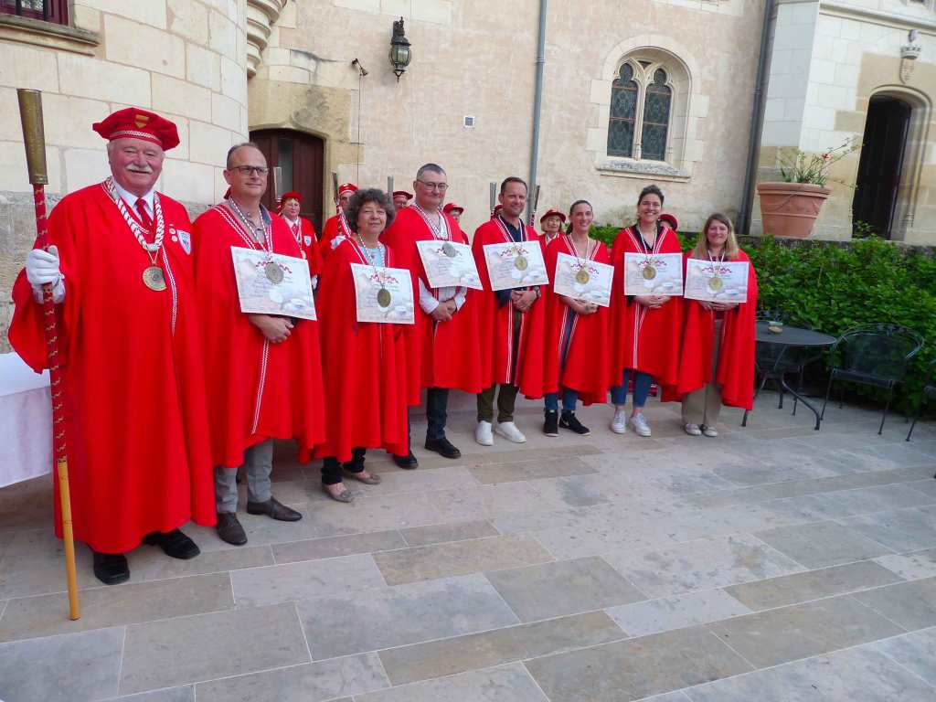 Madeleine a adoubé 7 nouveaux Chevaliers parrainés par Gérard, habitant ou travaillant à Marcé sur Esves et en présence de ceux que nous avions intronisé à La Roche Ploquin il y a 5 ans.