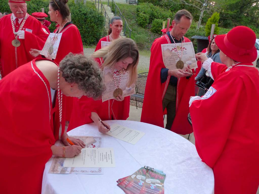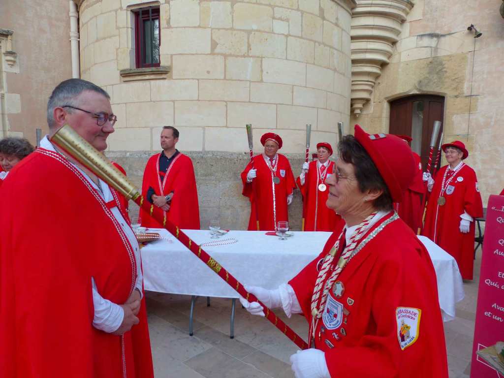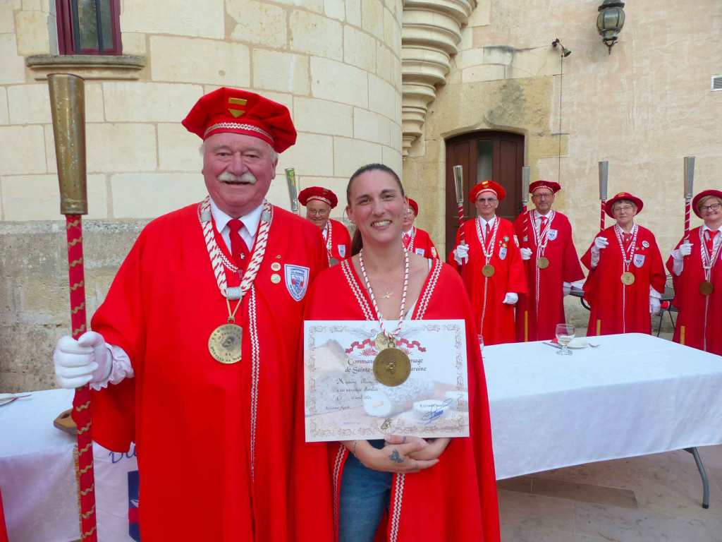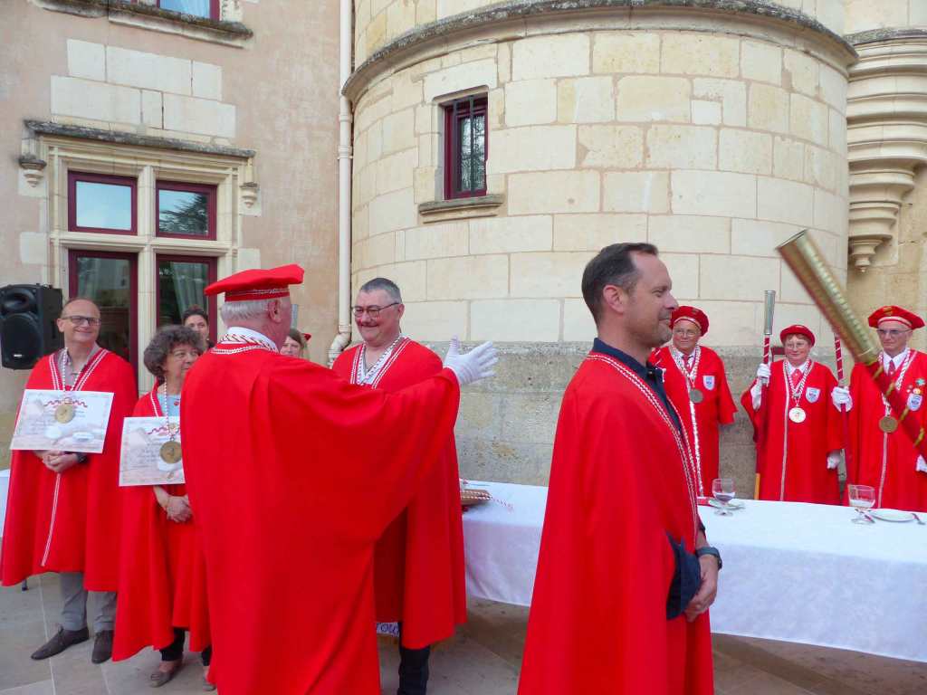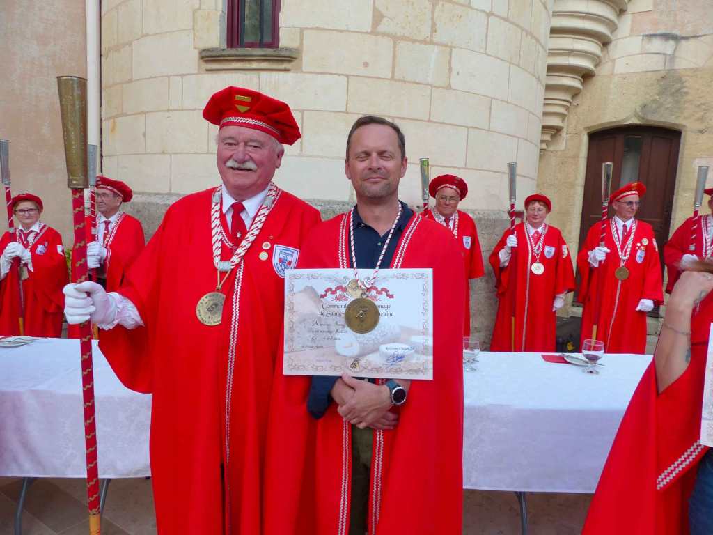 Madeleine a adoubé 7 nouveaux Chevaliers parrainés par Gérard, habitant ou travaillant à Marcé sur Esves et en présence de ceux que nous avions intronisé à La Roche Ploquin il y a 5 ans.