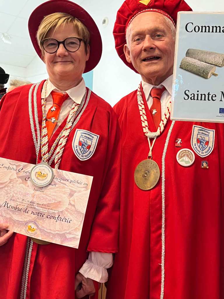 13h , rendez-vous à la salle des fêtes pour une légère collation sucrée, avec mise en habit immédiate. Les intronisations ont suivi avec présentation succincte ( à cause des marées pour la sortie bateau).
