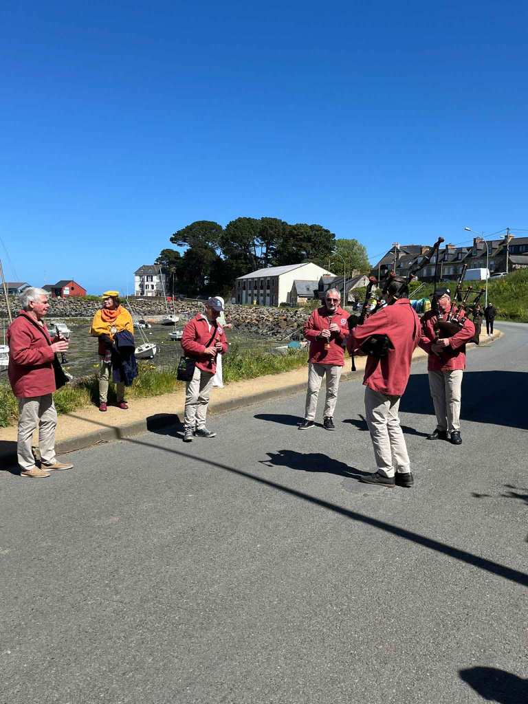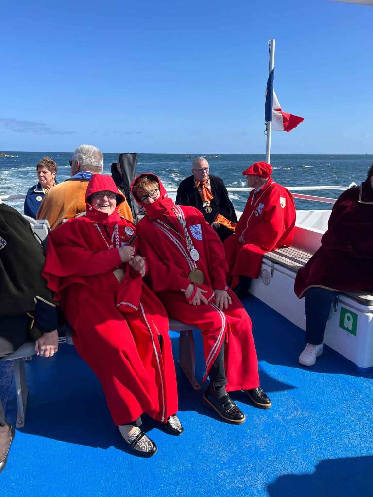 Ensuite départ pour le défilé jusqu’à la cale où nous avons embarqué à bord de la vedette pour une balade autour de l’île de Bréhat. Nous avons passé 3/4 h sur le bateau avec des vues magnifiques, avec le soleil et un petit vent frais. Retour sur la terre ferme pour une dégustation de la godaille accompagnée d’un verre de cidre de Paimpol. 19h30 rendez-vous était donné pour le repas dans le restaurant situé face à l’île de Bréhat. Nous avons dégusté les coquilles St Jacques de l’apéritif au fromage.