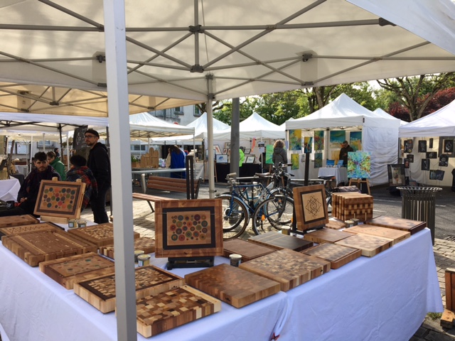 Arrivée à 9h au 3ème Marché annuel des Arts, quai Paul Bert à Tours, puis installation à côté de nos confrères du Véritable Nougat de Tours et d’une productrice de fruits cueillis et transformés, Camille Marty.