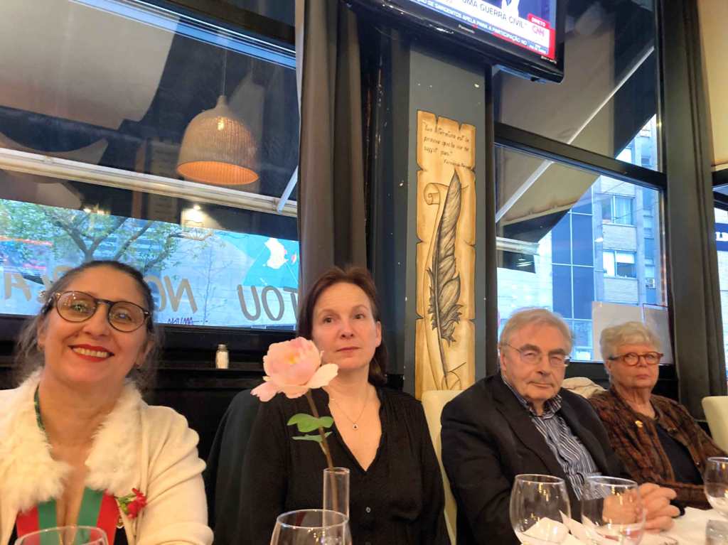 Nous avons pu échanger et nous restaurer en musique – avec entre autres la chanson de José Afonso, dit Zeca, élément déclencheur de la révolution avec la chanson « Grândola », villa Morena – tout en profitant en direct des festivités se déroulant à Lisbonne, noire de monde pour la circonstance. Aussi, le Chant des Partisans fut de la partie, tant grand est le risque de revoir la peste brune s’infiltrer insidieusement dans nos contrées. Il suffit de consulter les sondages des pays limitrophes en vue des prochaines élections européennes pour s’en persuader.