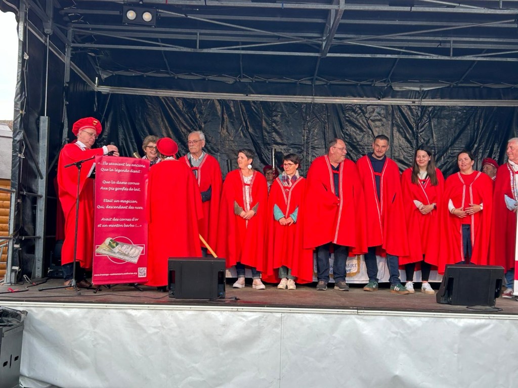 Après le chapitre d’Intermarché, nous sommes partis à Neuillé Pont-Pierre pour répondre comme tous les ans à l’invitation de Michel Jollivet, maire et de Yoann Leblanc, président de l’AIP, association interprofessionnelle des commerçants artisans de la commune, merci à Ophélie notre interlocutrice. L’inauguration de la foire a eu lieu à 15h, nous avons fait le tour de foire avec les officiels avant les discours et le vin d’honneur ce qui nous a permis de voir les différents exposants locaux et bien d’autres, la gastronomie était présente avec beaucoup de fromages dont notre fameux Sainte Maure de Touraine AOP. Cette foire est un évènement festif et incontournable du nord de la Touraine.