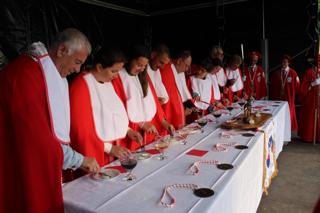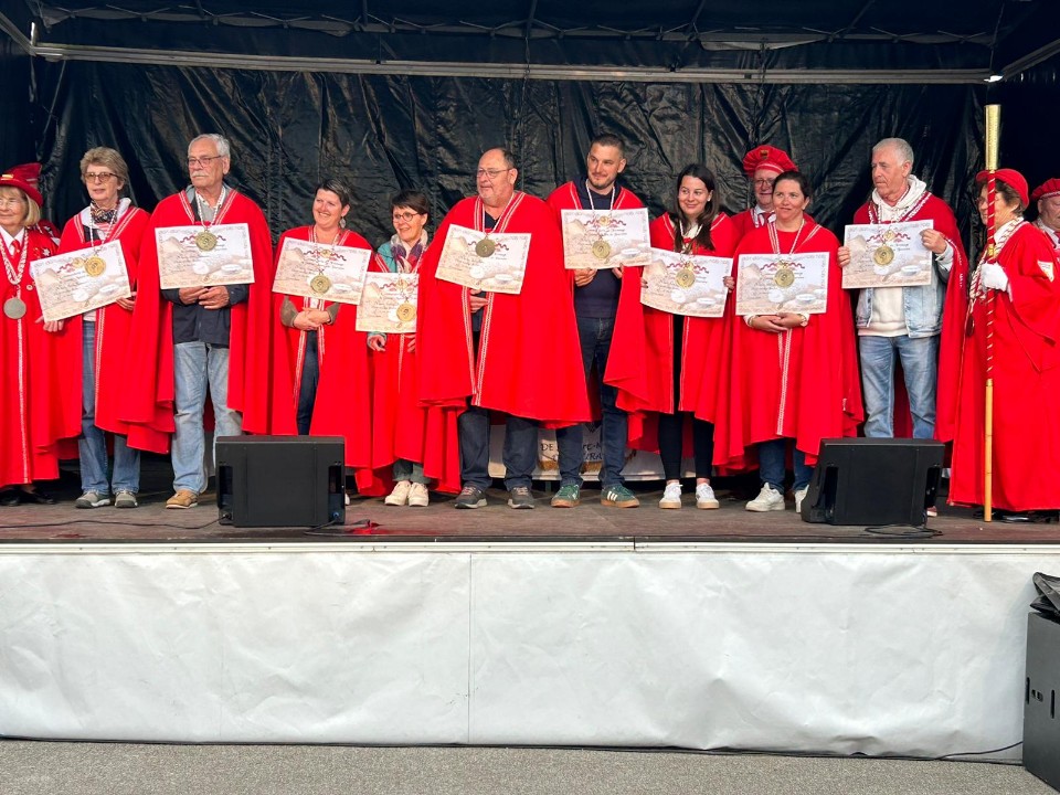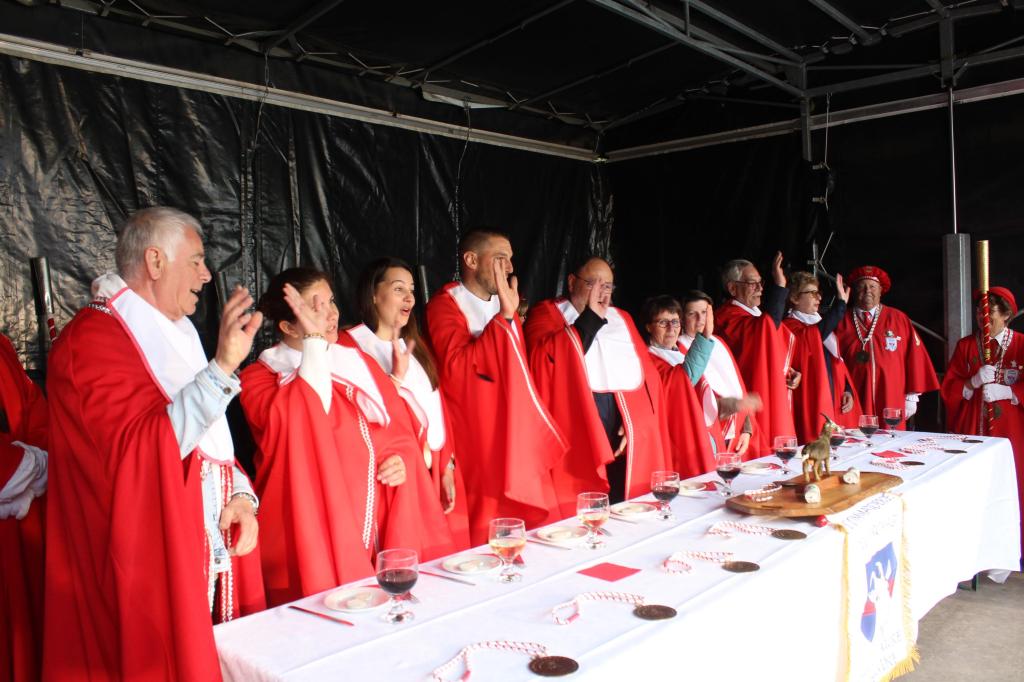 Par chance, le temps incertain est resté clément, le chapitre s’est déroulé à 18h30 comme prévu avec 18 nouveaux chevaliers intronisés et heureux de l’être car très amateurs de notre fromage.