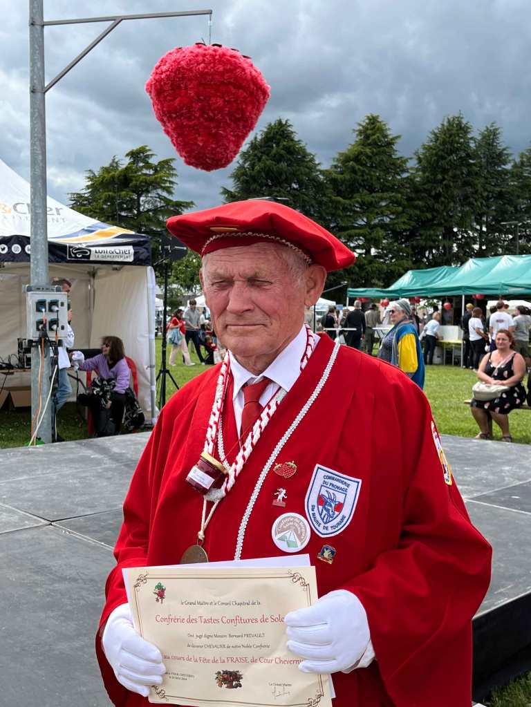 Ensuite, nous avons déambulé de stands en stands, ce qui nous a permis de déguster plusieurs variétés de fraise et nous avons également goûté les différentes confitures. Vers 15h, les intronisations ont eu lieu, 11 ont été faits chevalier dont Bernard.