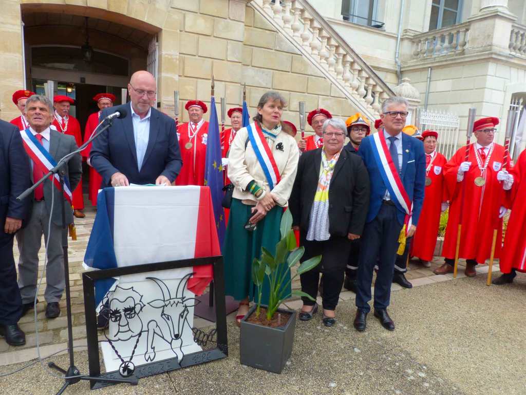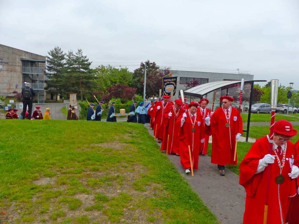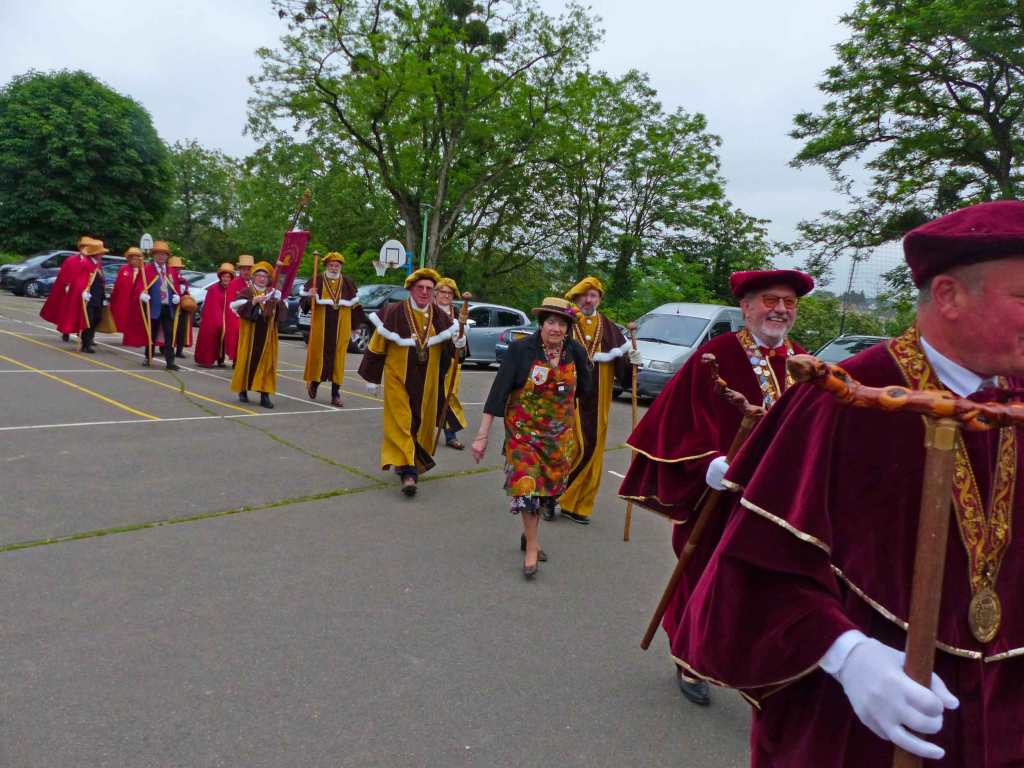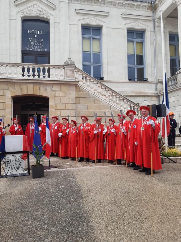 Après le déjeuner, les Confréries sont retournées vers l’Espace Trianon pour un nouveau Chapitre, (cette fois dans la petite cour), au cours duquel 28 Chevaliers ont été adoubés par notre Grand Maitre Madeleine.