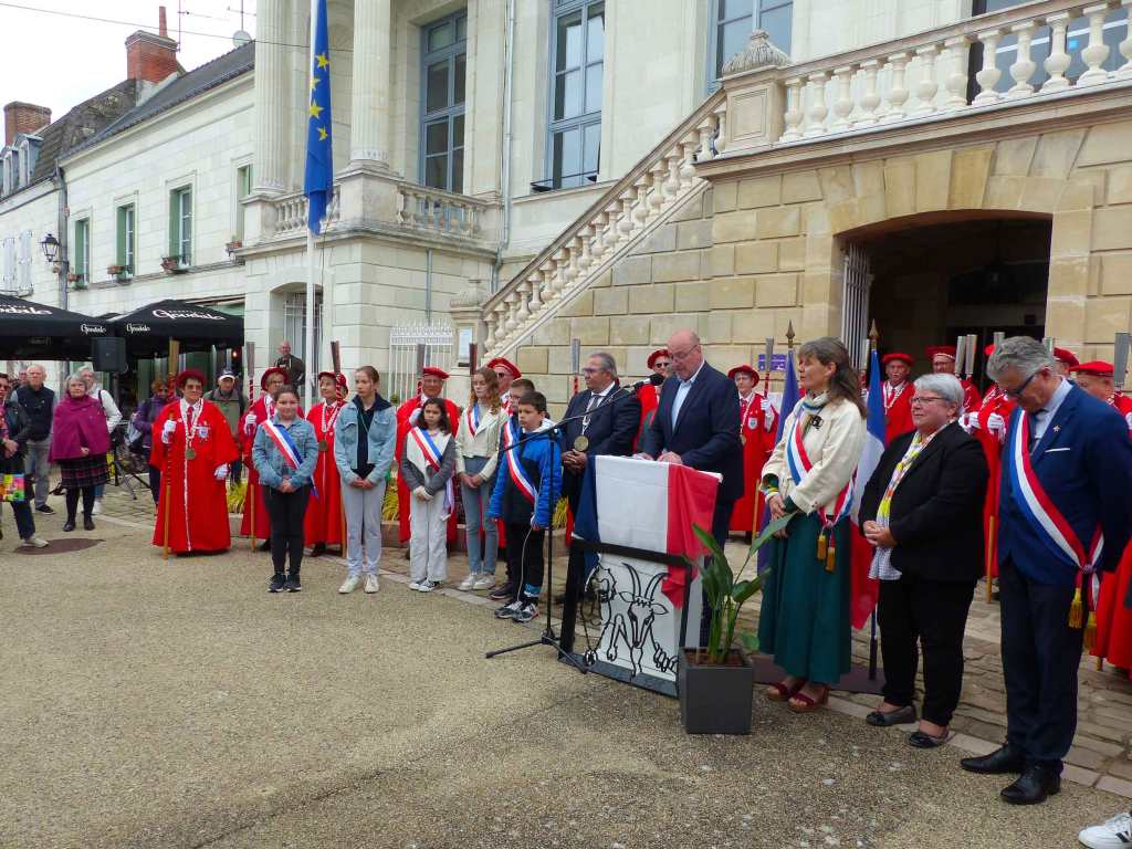 Dimanche matin, accompagnées par la banda de l’U.M. de Sainte Maure de Touraine dirigée par Rémi, les Confréries ont fait un tour complet et détaillé de toutes les expositions, traversant les absides des Halles, jusqu’à la place de l’église, la mini ferme, les présentations de chèvres, de volailles, lapins, chevaux.