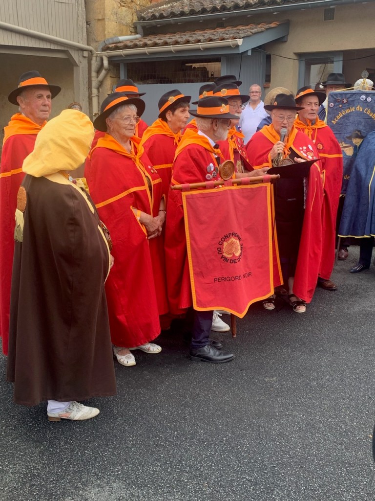 Tout était bien organisé pour le stationnement et la prise en charge des dignitaires présents, par un petit train qui nous a conduit au point de rassemblement, ou nous attendait un copieux petit déjeuner. Ensuite mise en habit des 34 confréries présentes, défilé à l intérieur de la ville et du marché hebdomadaire. Six intros faites sur le podium devant la mairie, apéritif offert par la municipalité au milieu des touristes suivi du repas dans la cour de l école avec un buffet copieusement garni et nous avons fait déguster du Sainte Maure de Touraine à chaque convive, qui à été apprécié. Animation musicale et fin des festivités à 18h. Nous avons passé une très belle journée.