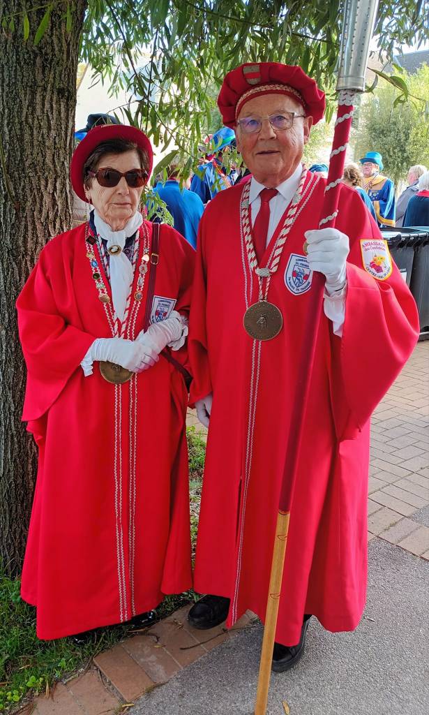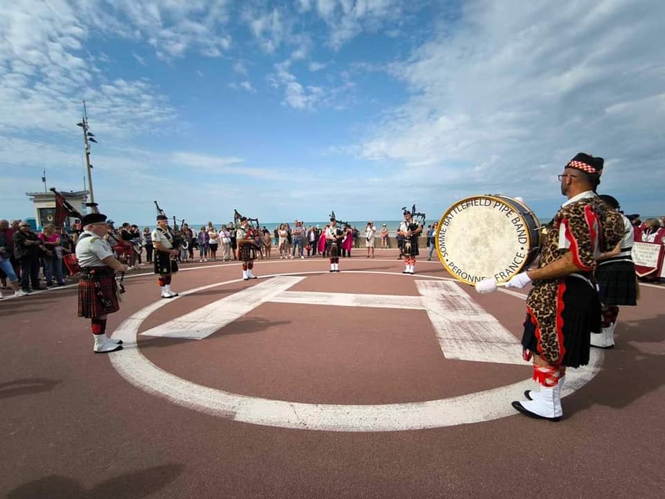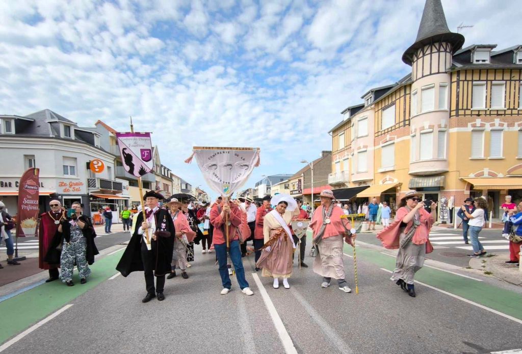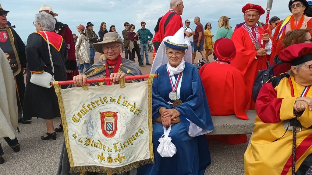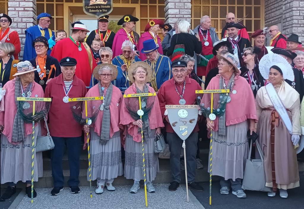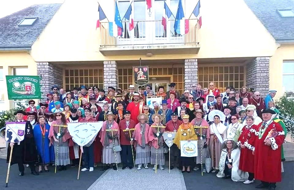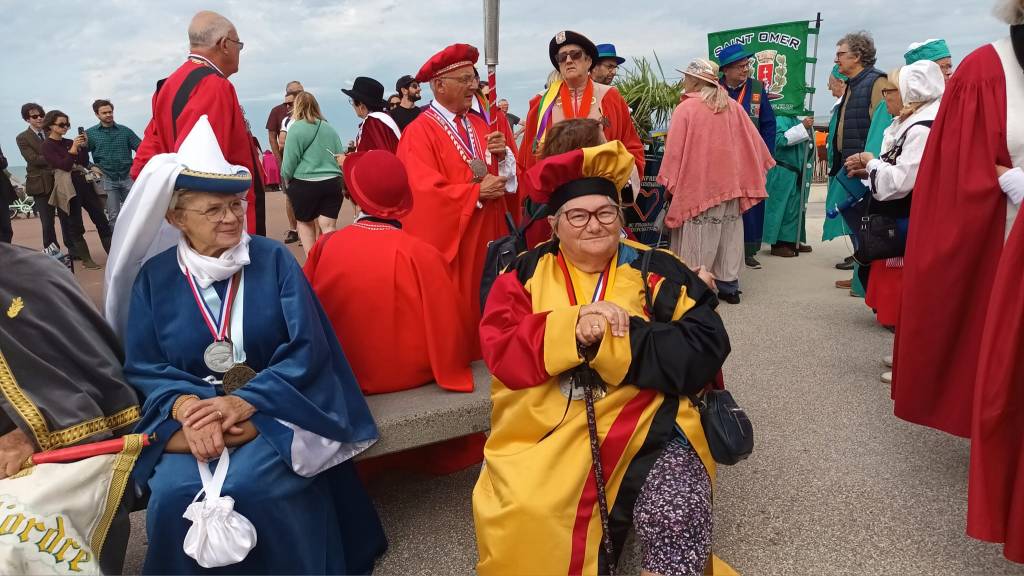 La jeune et dynamique Confrérie de la Crevette Grise tenait son 6 ème chapitre samedi 21 septembre 2024 à Fort Mahon Plage. Le but de la confrérie est de faire découvrir une des activités de la station balnéaire et de rappeler le Patrimoine côtier ancestral de la pêche à pied. Maryse PAGÉS Présidente et Grand Maître accueillait une quarantaine de Confréries (dont 19 Belges) pour un petit déjeuner et la mise en habits avant de se rendre devant la Mairie toute proche pour la traditionnelle photographie de groupe. Contrairement aux années précédentes, le chapitre s’est déroulé dans la salle du cinéma VOX où j’ai eu l’honneur d’être honoré parmi la quarantaine d’intronisés. A l’issue du chapitre, le petit train nous attendait à la sortie pour nous conduire à l’Esplanade de la plage où le groupe de musique écossaise les Pipe Band de Péronne ont donner une aubade. Le retour s’est effectué en défilé en empruntant la longue avenue animée de la plage avant de rejoindre la salle polyvalente pour le déjeuner de gala élaboré par Tony Lestienne « la Matelote étoilé au guide Michelin ».