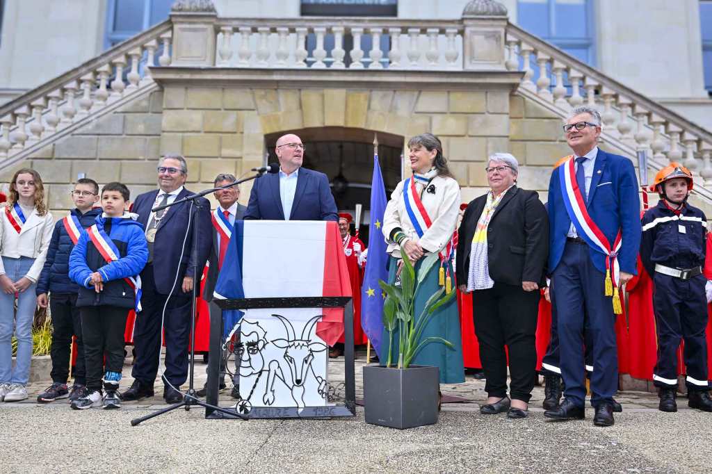 1. Bonjour à Toutes et à Tous. Quelle magnifique photo souvenir devant la Mairie de la commune lors de la 42° foire aux fromages de Sainte-Maure de Touraine.