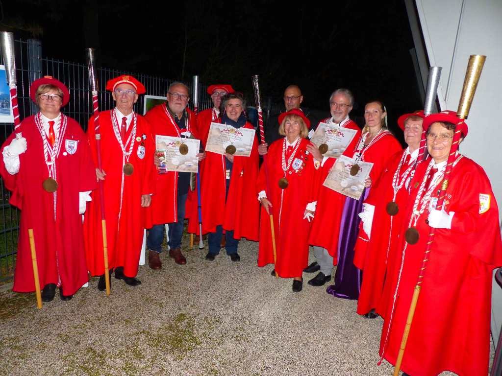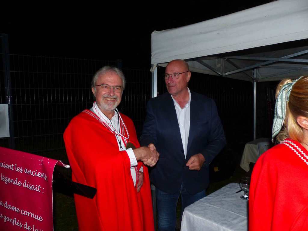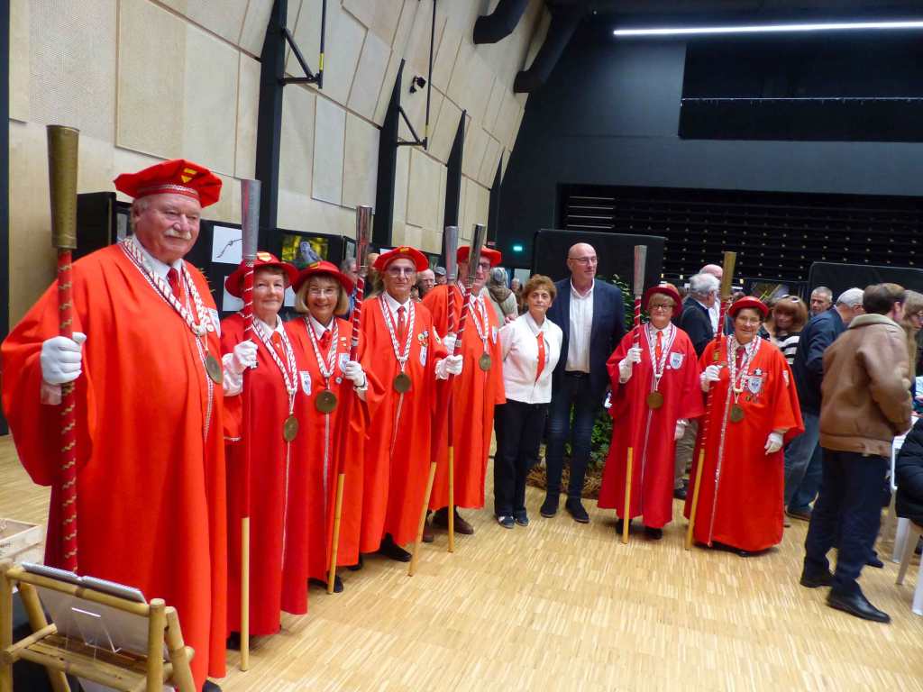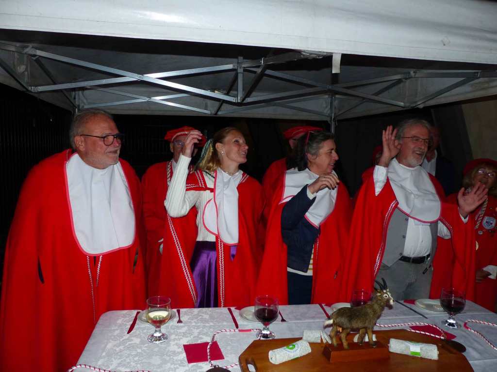 La météo le permettant, tous les invités se sont retrouvés ensuite autour du buffet servi en extérieur. C’est à ce moment-là que la cérémonie des intronisations (au nombre de 4, deux photographes professionnels et 2 membres du Club-Photo, eux aussi photographes) a eu lieu dans une ambiance joyeuse et décontractée.