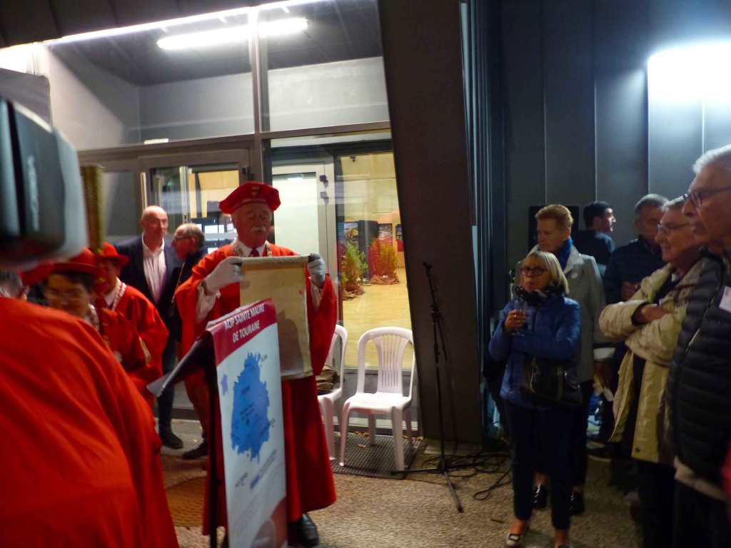 Du 2 Octobre 2024 au 6 Octobre 2024 le Club photo de VEIGNE organisait à l’Espace CASSIOPEE le festival de la photographie avec pour thème « L’environnement et la vie urbaine ». La Commanderie du Fromage de Sainte-Maure était invitée par M. Jean Meunier, président de la Foire aux Fromages de Sainte- Maure de Touraine, et partenaire du Club Photo, pour faire des intronisations. En arrivant, c’est d’abord direction les cuisines où nous avons été très bien accueillis par les membres de l’Association lancés dans la préparation du buffet qui sera servi ce soir. Notre tâche consistait à préparer les toasts aux rillettes de Tours et au fromage de chèvre de Sainte-Maure de Touraine, tâche que nous avons réalisée avec plaisir et dans la bonne humeur.