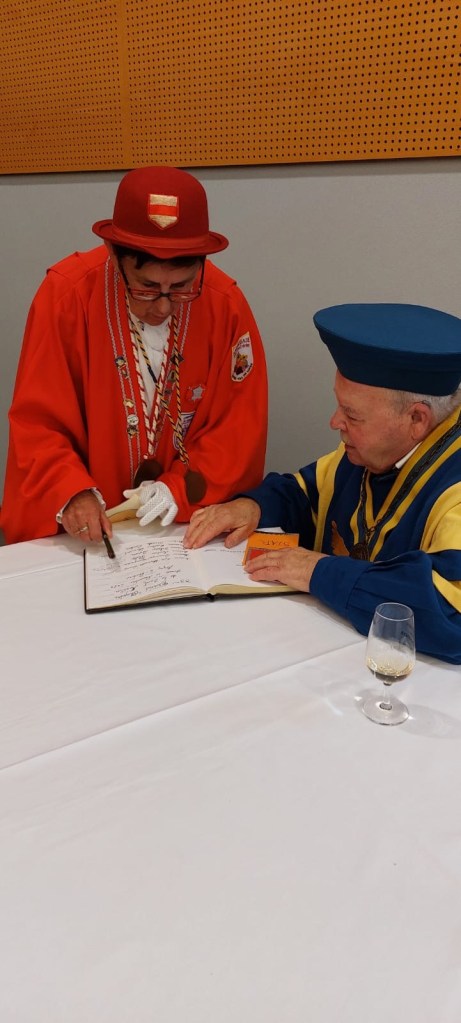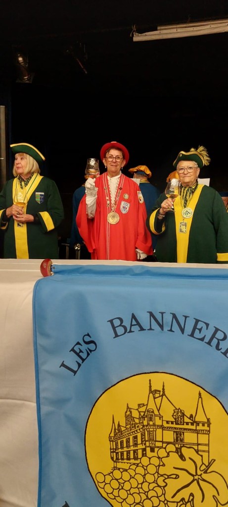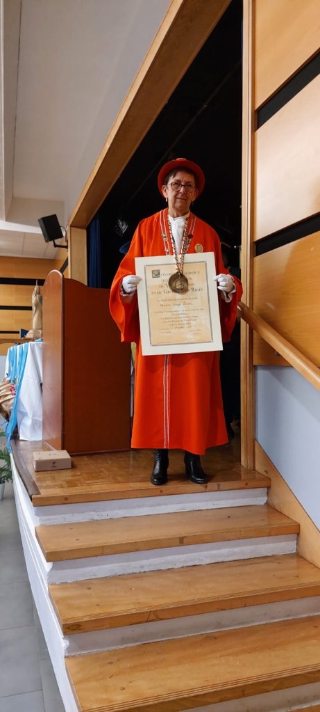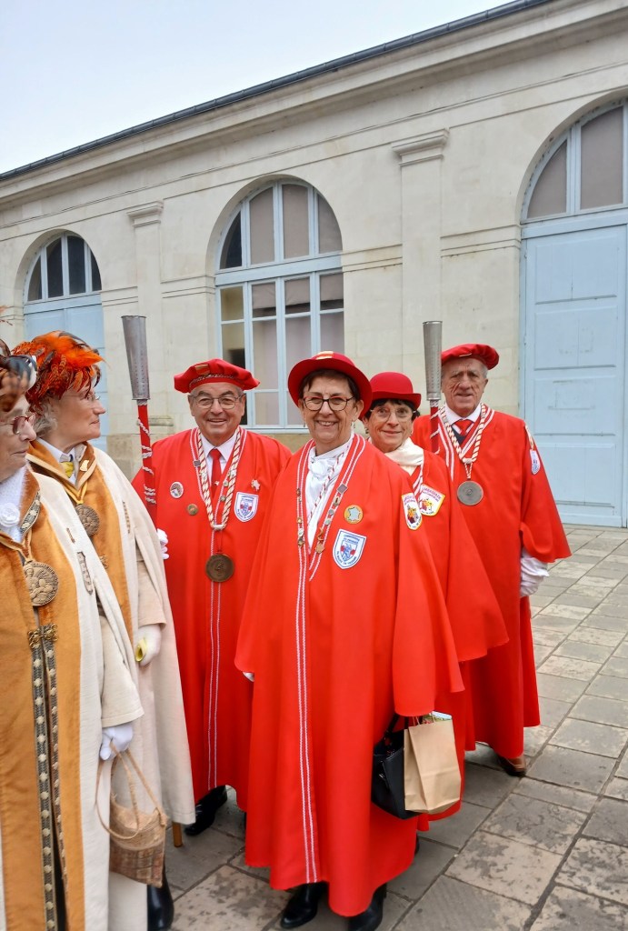 Notre Commanderie était représentée par Jean Louis et Annick Leproust et de Fernand et Solange Baron. Après un petit encas dans une salle de la Mairie, mise en habits et partons en défilé avec 19 Confréries sous un brouillard épais et froid pour la messe. Les Commanderies ont été accueillies par le Prêtre. Une jolie messe faite d ‘humour et de partage. Nous reprenons nos voitures pour aller à la salle polyvalente.Accueil de chaque Confrérie, intronisations de 15 personnes dont mon épouse.