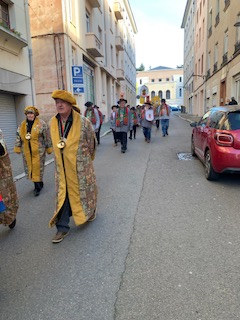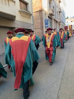 Accueillis samedi matin en centre ville pour retrouver 26 confréries, défilé parmi la foire dans les rues et retour à la salle pour un repas généreux dans une ambiance sympathique avec une bonne organisation.