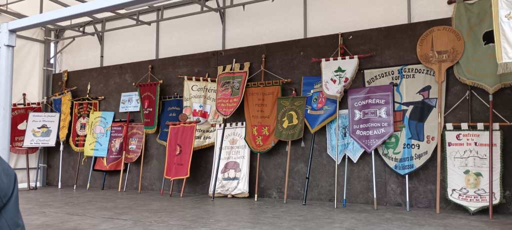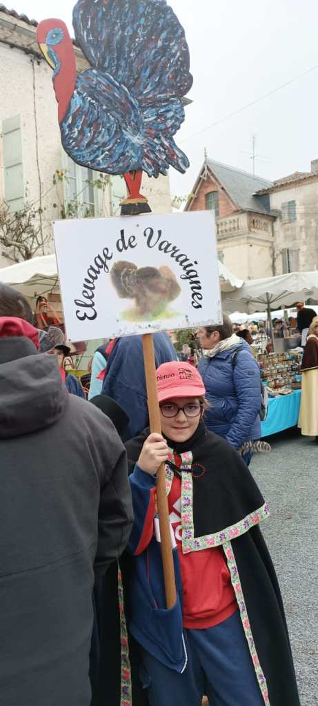 Le Grand Ordre International des Dindons du Périgord à Varaignes, petit village du Périgord Vert, a fêté son 58ème Chapitre le 11 novembre, lors de la 58ème Foire aux dindons, avec un programme riche en saveurs et traditions. Cette Confrérie , dont l’origine remonterait à HENRI IV, a été créée en 1966 et compte 44 membres. Cette manifestation a ramené 15 000 visiteurs dont 44 Confréries essentiellement du Sud-Ouest. MTh Magnaval et Marcel Laubigeau y représentaient la Commanderie Fromage de Sainte-Maure de Touraine. Après un accueil chaleureux nous avons entamé la journée à 9h par un défilé parmi une foule dense au travers de 150 stands de produits du terroir. Un char et un dindon nous précédaient et la Confrérie offrait aux passants la potion magique préparée avec l’ingrédient indispensable « le dindon de Varaignes » !!!