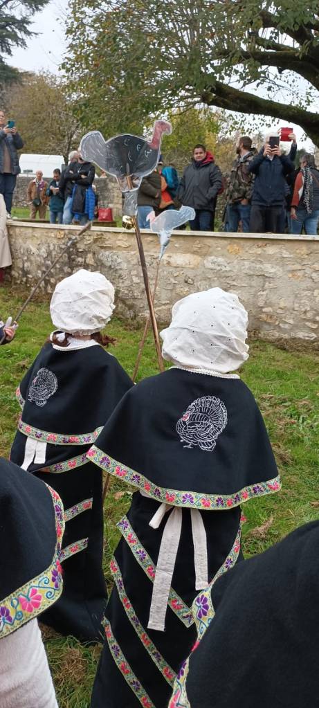 Après la commémoration de l’armistice, à l’apéritif, nous avons dégusté le réputé boudin blanc « boudindon » fabriqué et vendu exclusivement ce jour !!!…. et délicieux…. Ensuite, sur le podium, chaque confrérie s’est présentée et quelques intronisations ont été faites. A suivi un délicieux déjeuner 100% local, très convivial et festif animé par une banda et après nous avons assisté au moment phare de la journée, attendu par des centaines de visiteurs : le concours de « glouglou »….But du jeu :…. De nombreux concurrents s’affrontent et doivent imiter au mieux le cri du dindon !!!!