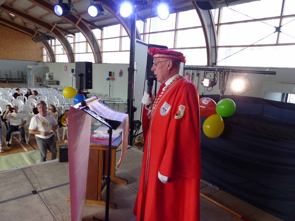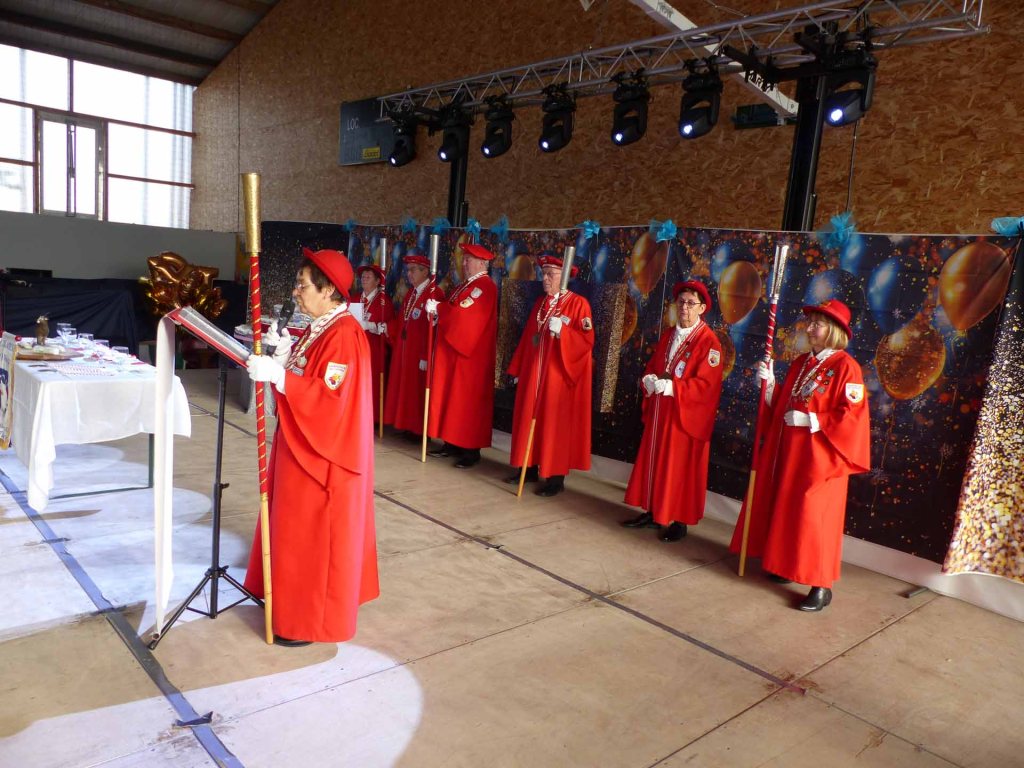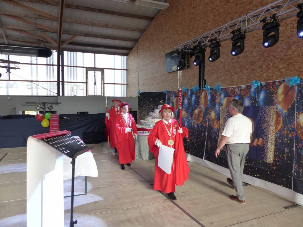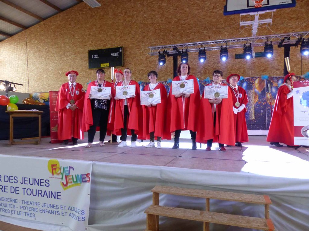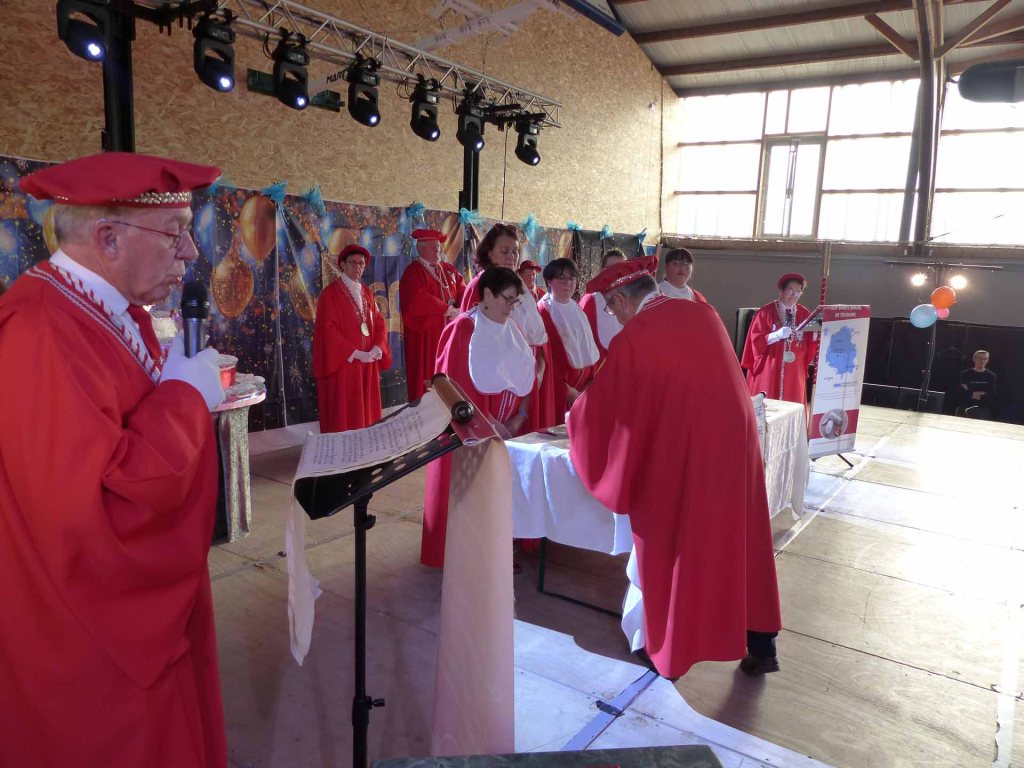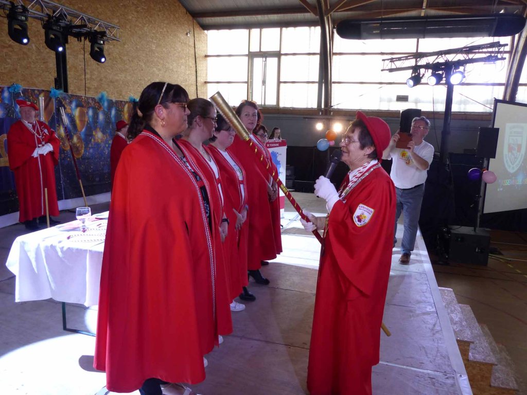 Un spectacle qui se termine en regroupant sur scène tous les participants autour d’un gâteau d’anniversaire XXL. Le public conquis a repris en chœur « l’HAPPY BIRTHDAY », suivi d’un tonnerre d’applaudissements. Soirée très réussie, qui a demandé un travail considérable (une année de préparation). Le lendemain matin, après la réunion de l’Assemblée Générale, les membres de la Commanderie du fromage de Sainte-Maure de Touraine sont à leur tour montés sur scène pour procéder à un Chapitre Exceptionnel afin d’introniser 5 CHEVALIERS : Françoise METAIS, Vice-Présidente de l’Association, Sabrina RISO-TRICOCHE, Lucy DOS SANTOS LOURO, Estelle AUBINEAU et Laëtitia DUBART qui ont toutes un point commun : leur investissement au niveau du Foyer des Jeunes.