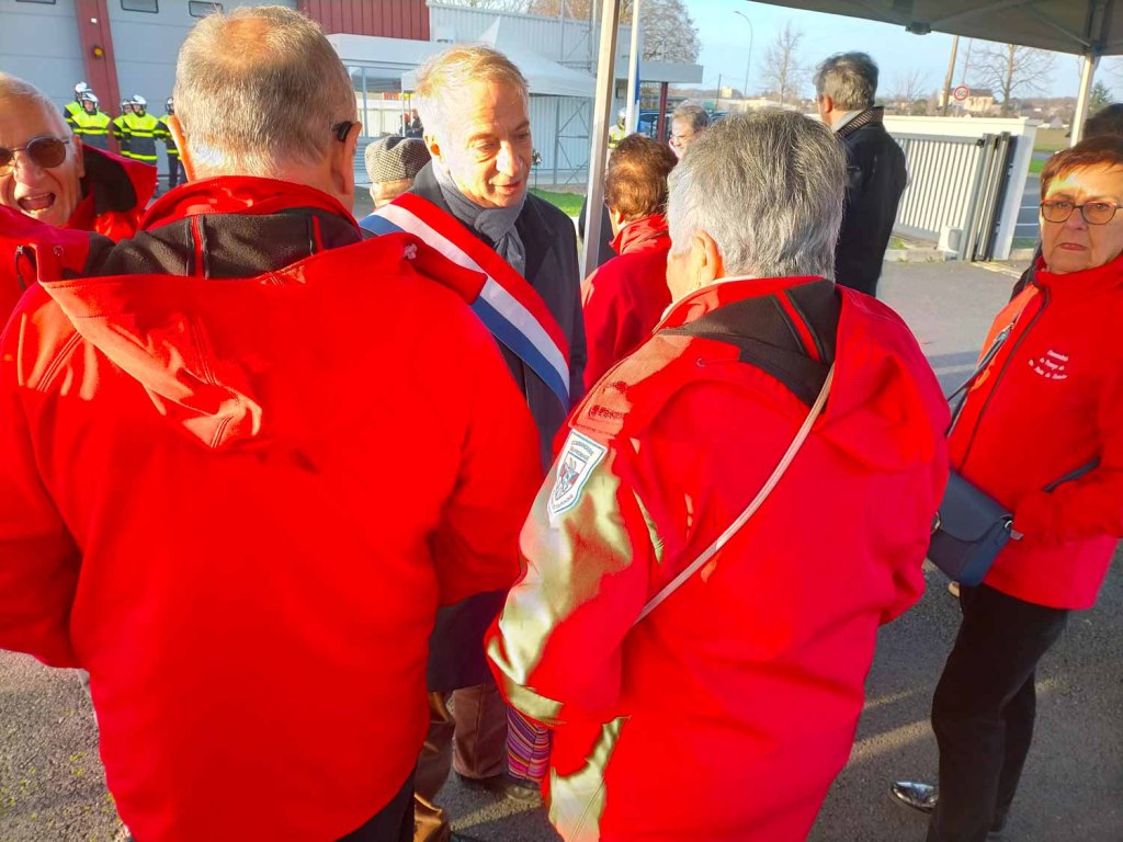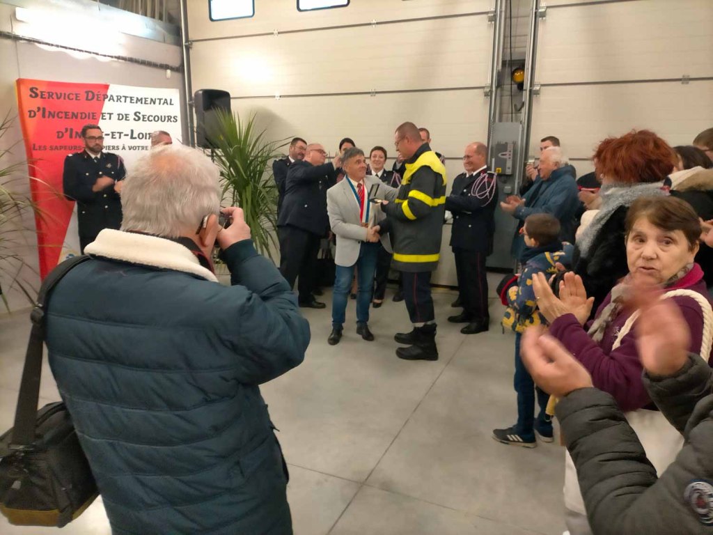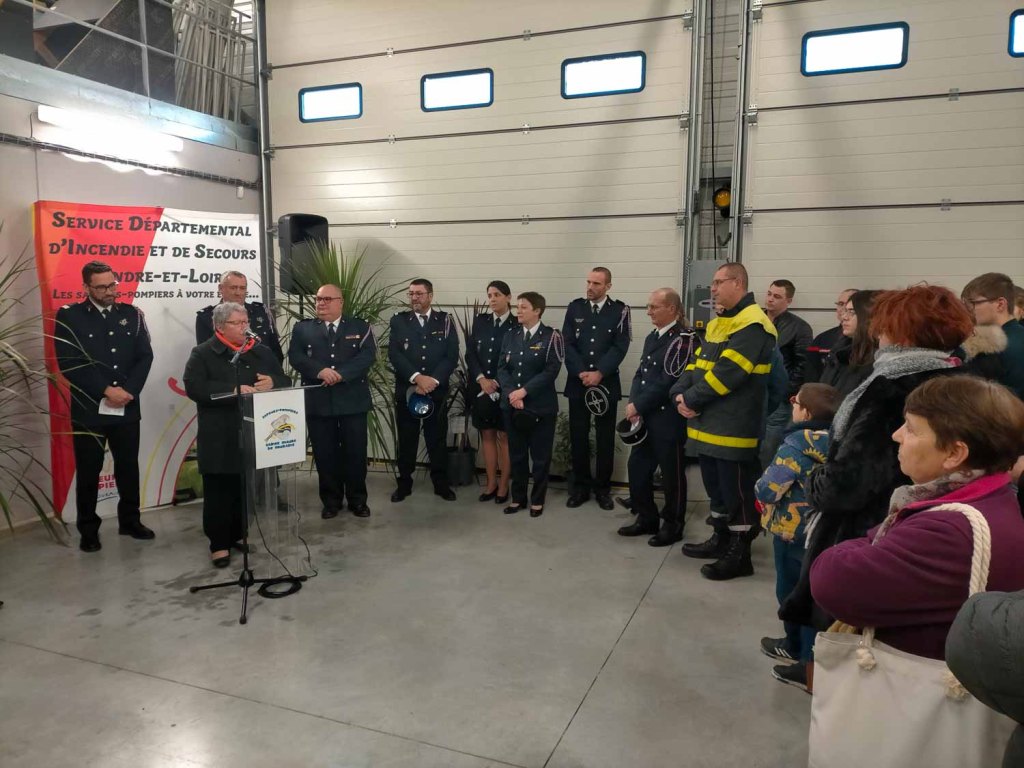 Ensuite les Chefs de Centre déposent une gerbe au pied de la stèle, pour faire mémoire des Sapeurs-Pompiers ayant perdu la vie dans leur mission de secours à leurs concitoyens. Le Député Laurent Baumel dépose également une gerbe au pied de la stèle. Cette manifestation extérieure terminée, les sapeurs-pompiers ouvrent le hangar et tout le monde apprécie un abri bienfaisant pour entendre les rapports des deux Chefs de Centre, l’intervention du Capitaine représentant le Colonel, le Maire de Ste Maure de Touraine qui remet la médaille de la Ville à un sapeur-pompier volontaire qui cesse son activité après 30 ans de service actif, Madame Nadège Arnault salue l’engagement et la solidarité de l’ensemble du corps de sapeurs-pompiers, volontaires et professionnels, qui ont à gérer des événements inédits comme les inondations de cette année. Le Député Laurent Baumel termine les allocutions en réaffirmant sa volonté de répondre avec les moyens dont il dispose aux attentes des services d’incendie et de secours. Ensuite, le vin d’honneur rassemble tout le monde pour un moment de convivialité.
