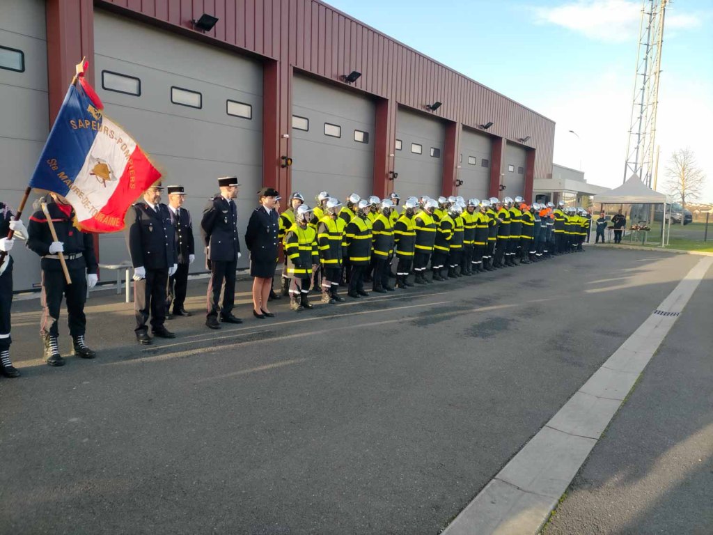 Cette année les deux chefs de C.I.S., Sainte Catherine de Fierbois, Julien Fouché et Sainte-Maure de Touraine, Raphaël Lorillou, ont réuni leurs effectifs à la caserne de Ste Maure pour célébrer tous ensemble avec les familles cette fête annuelle. Comme l’a annoncé, Nadège Arnault Présidente du Conseil Départemental, la 1 ère Pierre du futur C.I.S de Ste Catherine étant posée, la Sainte Barbe 2025 sera célébrée en même temps que l’inauguration. Après l’envoi des couleurs, la Marseillaise, la revue des troupes est effectuée par la Présidente du Conseil Départemental, accompagnée du Député Laurent Baumel, de Etienne Martegoutte V.P. du Conseil Départemental et des deux Chefs de Centre précédés du Capitaine représentant le Colonel Commandant du S.D.I.S., sur la Marche Ecossaise des soldats de Robert Bruce. Il est procédé ensuite à la remise des nouveaux Grades par les autorités, puis des insignes de formation aux J.S.P.