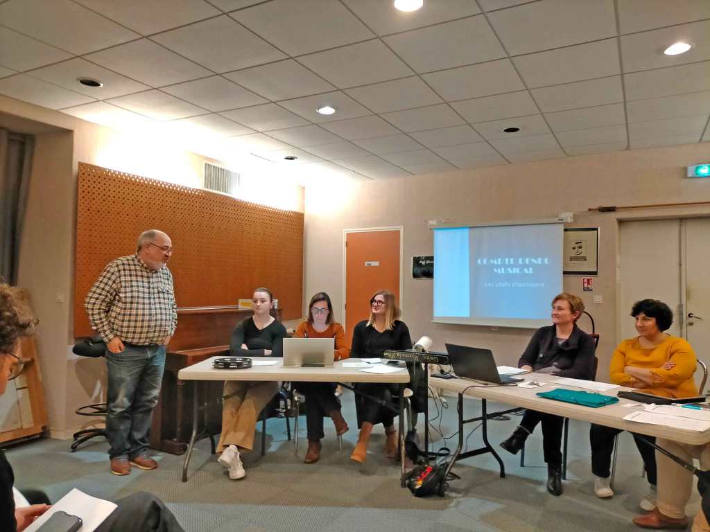 Une année intensive avec un nombre important d’interventions dans les manifestations de Sainte Maure de Touraine, des communes voisines, de la Touraine.Cette activité débordante a connu son « Point d’Orgue » le jour de la Sainte Cécile, 22novembre, avec l’Orchestre d’Harmonie de La Garde Républicaine. Le Gymnase Marcel Cerdan rempli de 800 auditeurs, captivés par la maitrise mondialement reconnue de cette célèbre formation. La fin de leur répétition de l’après midi à 18 H, a été ponctuée d’un Chapitre Exceptionnel, tenue par La Commanderie, au cours duquel le Colonel Stéphane Billac et son Chef de pupitre des clarinettes ont été adoubés Chevaliers par notre Grand Maitre Madeleine. Le dimanche 24 novembre était le point final de la célébration du 150 ème anniversaire avec laparticipation des Harmonies de Veigné, saint Avertin, Monts et bien sûr Ste Maure de Touraine. Une belle fête offerte aux « fans » de l’U.M. Après le rapport d’activité, le rapport financier (presque à l’équilibre) à la satisfaction detous, démontrait la maitrise des responsables de l’association, qui avaient engagé un budget conséquent pour cette année anniversaire. Le rapport moral de Maryline, Présidente faisait la synthèse de cette réussite, se projetant pour l’année 2025, avec un effectif de musiciens en progression qui passe de 37 en 2024 à 45 en 2025, grâce à l’apport des élèves formés par l’école de musique intercommunautaire. La parole est ensuite donnée aux Chefs de Musique. Christophe Toublanc avait déjà annoncé son retrait du poste de Chef de musique, pour un surcroit d’activités sur ses autres postes, mais confirme qu’il reste fidèle et continuera comme son épouse Agnès de participer aux manifestations de l’U.M. Rémi Dubois, indique qu’après avoir envisagé de cesser sa direction, conforté par l’arrivée du remplaçant de Christophe Toublanc, continue en tant que Saxo Ténor et pourra suppléer en cas de besoin, le nouveau Chef. Alexandre Aguiléra, Nouveau Chef, présent depuis début octobre, exprime son souhait de continuer à faire avancer cet ensemble consolidé de 45 musiciens.