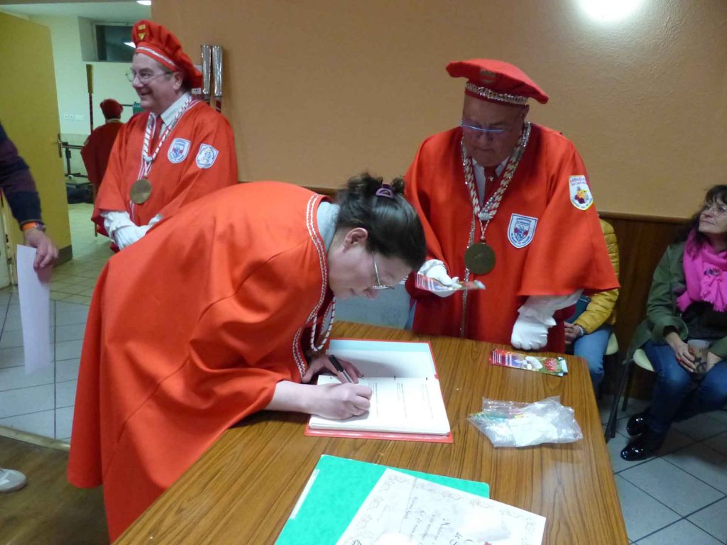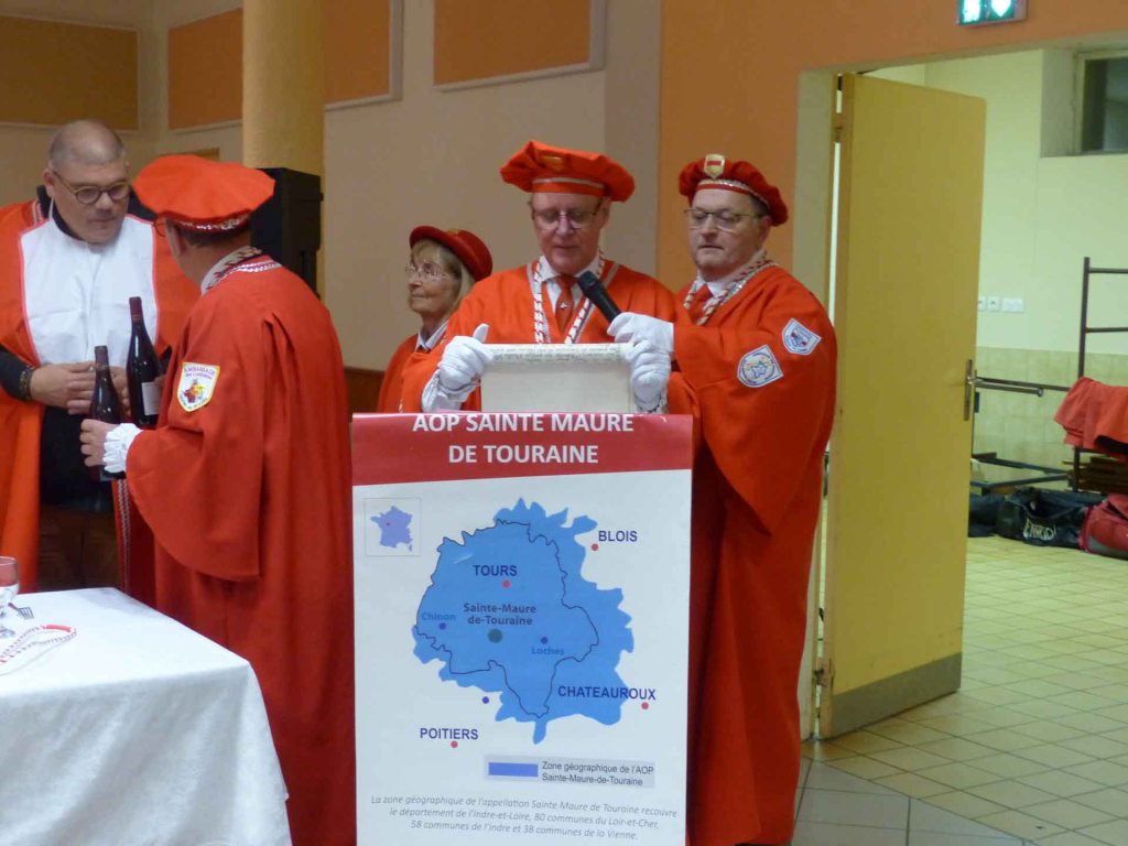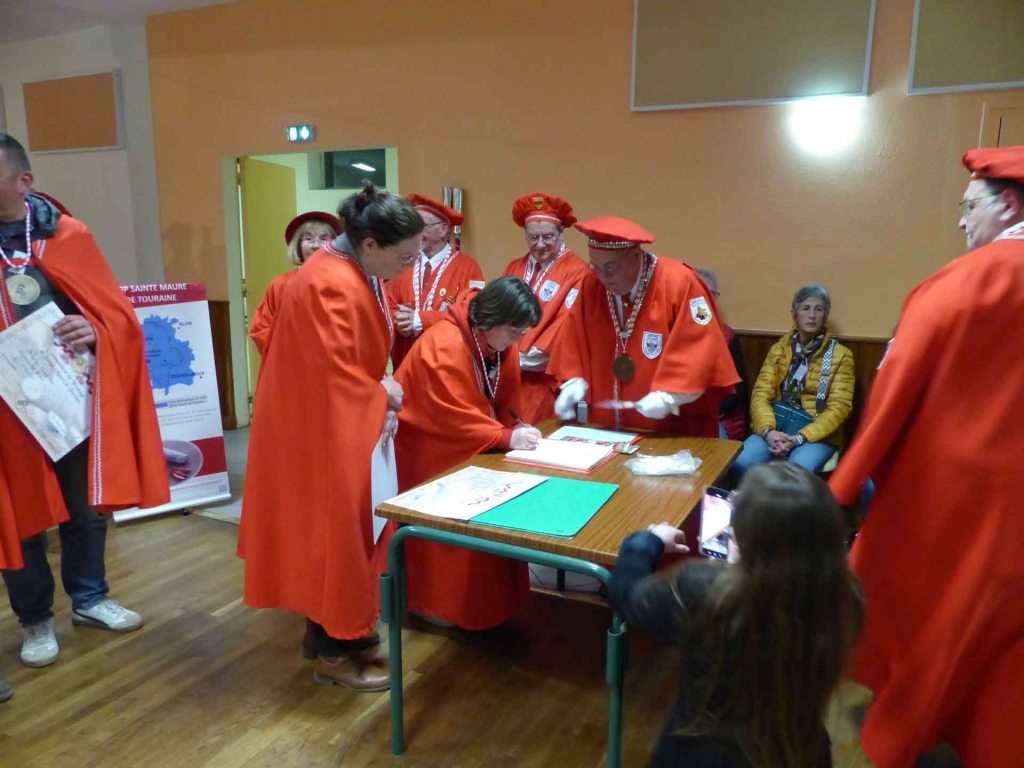 Présidée par Hervé, cette soirée festive de remerciements aux Partenaires, à laquelle La Commanderie était associée s’est déroulée à « La Petite Escale », Bossée, entouré de toute son équipe, en présence de Monsieur Le Maire de Noyant, dont la commune est devenue le siège du club. Personne n’a oublié, que le Club a démarré ses premiers entrainements sur le terrain de sports de Bossée. Une belle affluence : familles, supporters, amis se sont joints à ce moment de convivialité et de partage. Sous la Présidence de Hervé, qui accueillait et remerciait les partenaires de leur soutien, notre Confrère Antoine Caillault, avec la complicité de notre Grand Maitre Madeleine avait sollicité La Commanderie pour la tenue d’un Chapitre Exceptionnel en ouverture de cette belle soirée. Selon le cérémonial habituel, 10 Dignitaires avaient tenu à rehausser l’éclat de cette manifestation amicale, se partageant les différentes tâches à accomplir pour traiter dignement six nouveaux Chevaliers, partenaires du Rugby Club de La Manse. Dégustation de ce « fabuleux » fromage accompagné d’un « nectar » de Touraine, prestation de serment, adoubement par notre Grand Maitre, remise de la médaille, du diplôme, signature du Livre d’Or se sont déroulés sous le regard attentif des joueurs, supporters et amis.