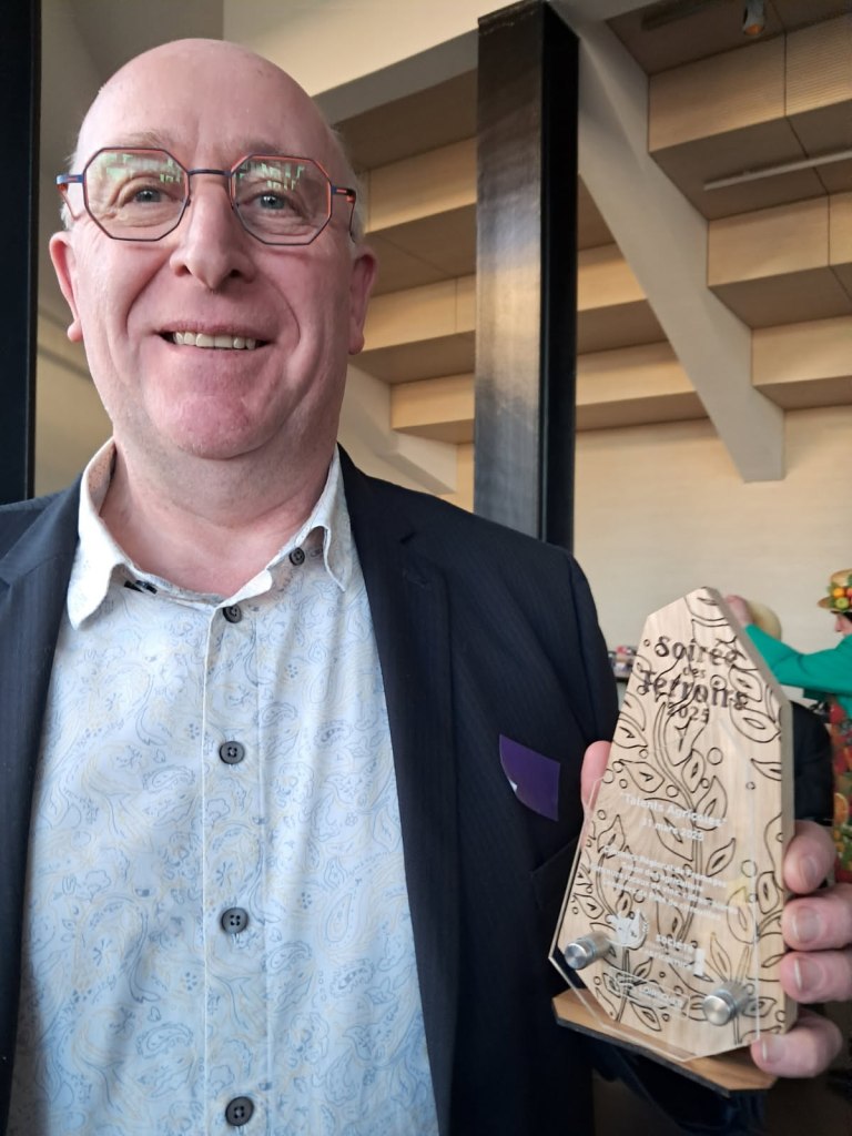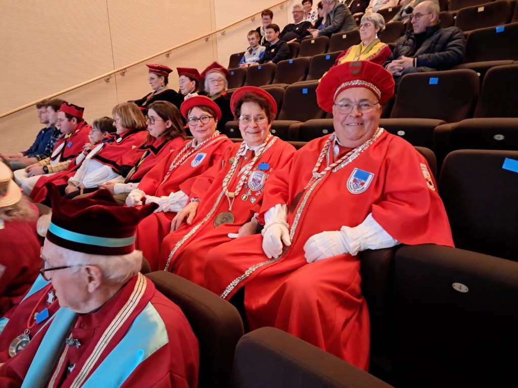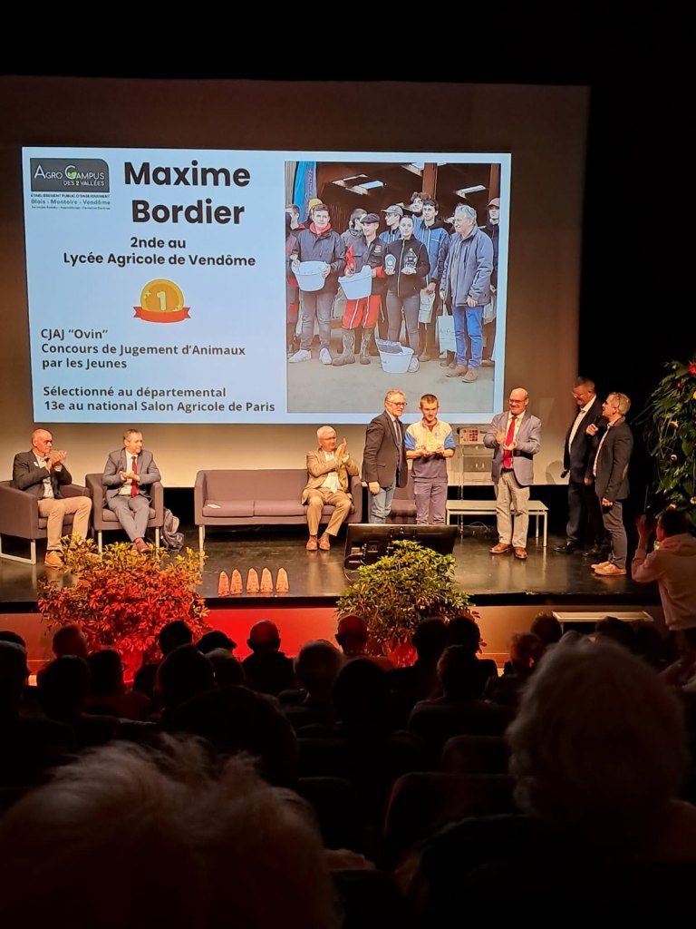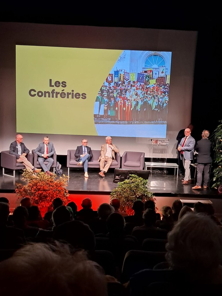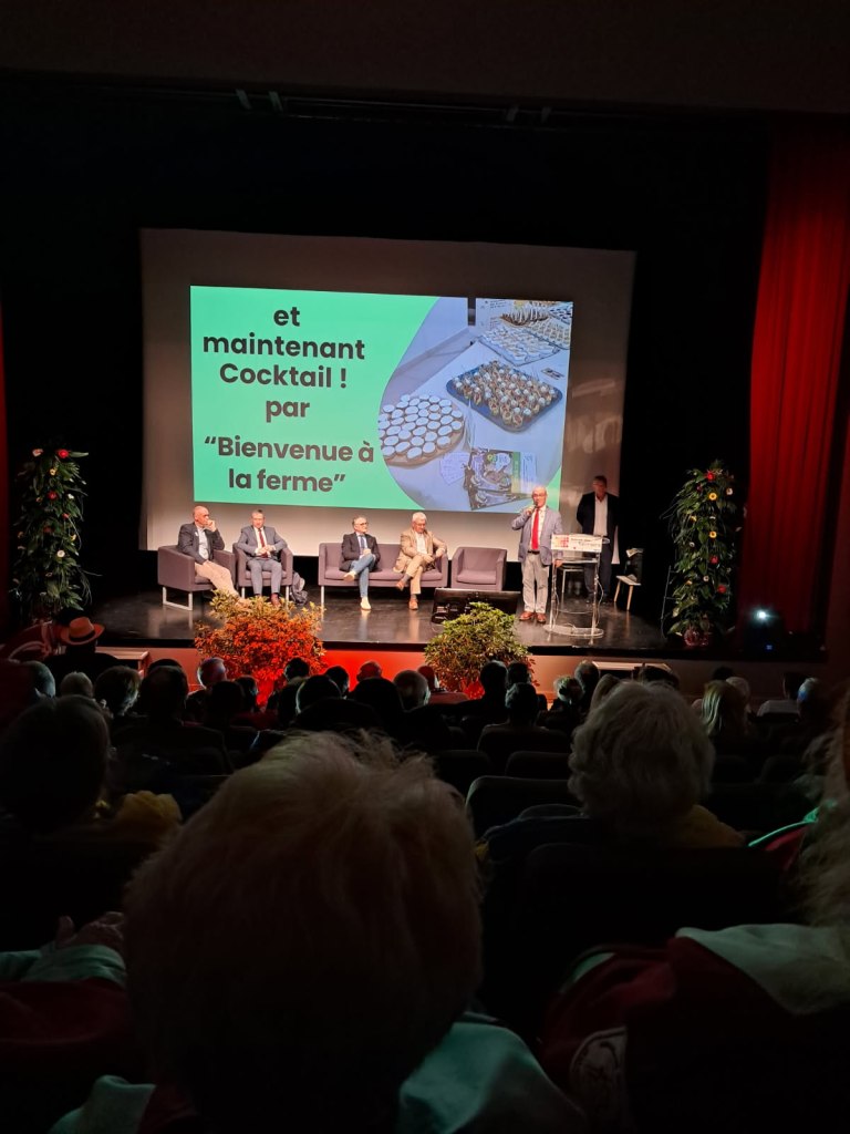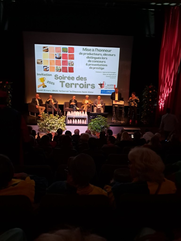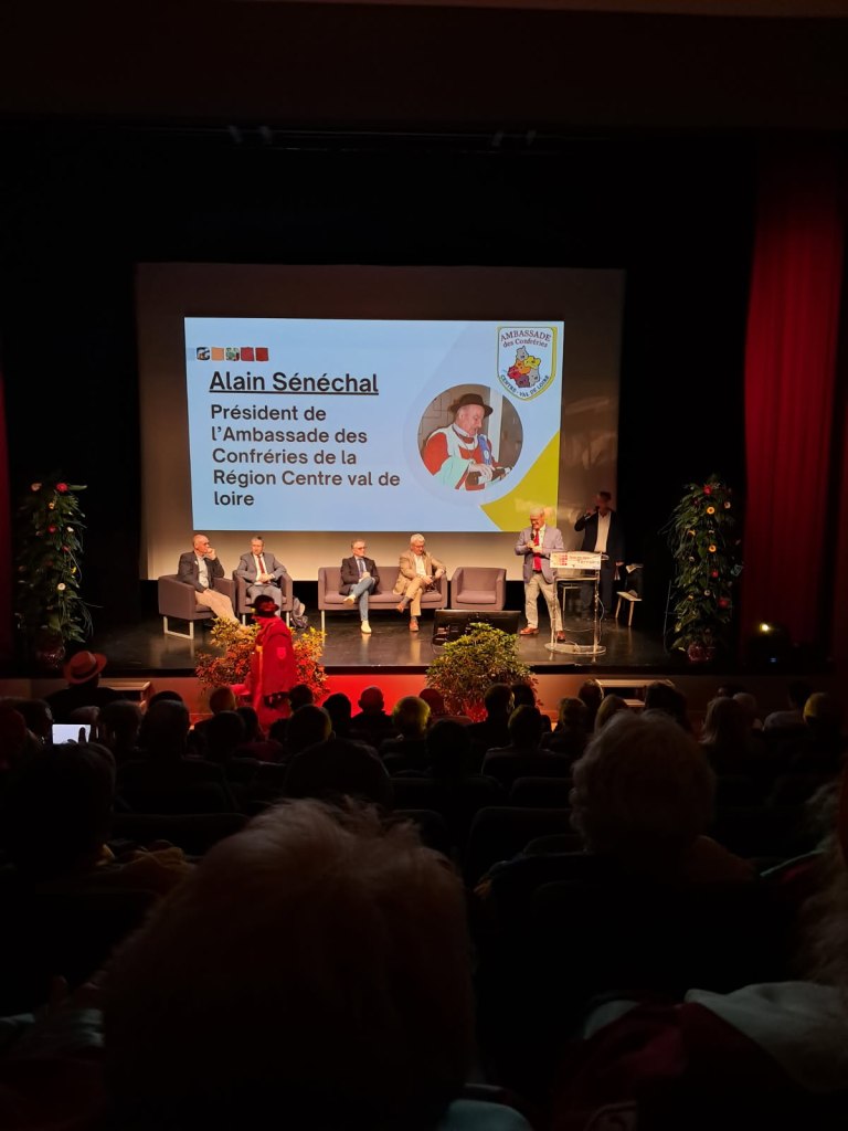 Comme tous les ans, nous sommes allés à la Soirée des Terroirs, ( Nadège, Jean-André, Madeleine ) suite à l’invitation de Jacky Pelletier, président, et de Benoît Rousselet, animateur de la S.D.A du Loir et Cher. C’est à la Chaussée Saint Victor, dans la belle salle du Carroir que se déroule cette soirée qui met en lumière le riche terroir de cette région, vins, fromages de chèvre et de vache, bières artisanales, l’élevage et tout ce qui tourne autour de l’agriculture, collèges, lycées, lycée horticole (a assuré la décoration florale) etc. Après les discours, les lauréats présents ont reçu leurs trophées gagnés lors de nombreux concours : à Selles sur Cher , salon de l’agriculture ou autres. Notre ami dignitaire de la Commanderie du Fromage de Ste Maure de Tne Patrick Blanchet représentait Eurial Touraine pour recevoir le 2ème prix dans la catégorie Pouligny. La famille Kuippers a reçu un trophée pour son 1er prix en pâte pressée (Gouda) représentée par deux de ses fils. Le concours régional très renommé de Selles sur cher a eu lieu le 6 novembre 2024 avec plus de 250 fromages à déguster et une centaine de jurés dont des étudiants dégustateurs. Avec 95% de producteurs exploitants, ce concours permet de valoriser la production fromagère des éleveurs de la région nombreux à avoir obtenu une médaille. La 5ème édition des journées alimentation collèges (mi-octobre) est une manifestation pédagogique qui met à l’honneur les produits locaux et initie les jeunes aux bonnes pratiques alimentaires à travers des ateliers pratiques qui font découvrir ces filières locales et apportent une éducation alimentaire pour un avenir durable. Elle a été suivie par 900 élèves de 10 établissements, 36 classes de 6ème, action soutenue par la S.D.A et le département du Loir et Cher avec l’aide de 60 bénévoles dont les producteurs, chefs de cuisine, etc. C’est une belle initiative qui met en lumière le terroir. Avant de clôturer, Jacky Pelletier a de nouveau remercié la vingtaine de confréries présentes et donné la parole à Alain Sénéchal, président de l’Ambassade des Confréries de la Région,qui a souligné l’importance des confréries dans ce tissu rural pour défendre notre savoir faire dans toute la France et faire perdurer nos traditions.