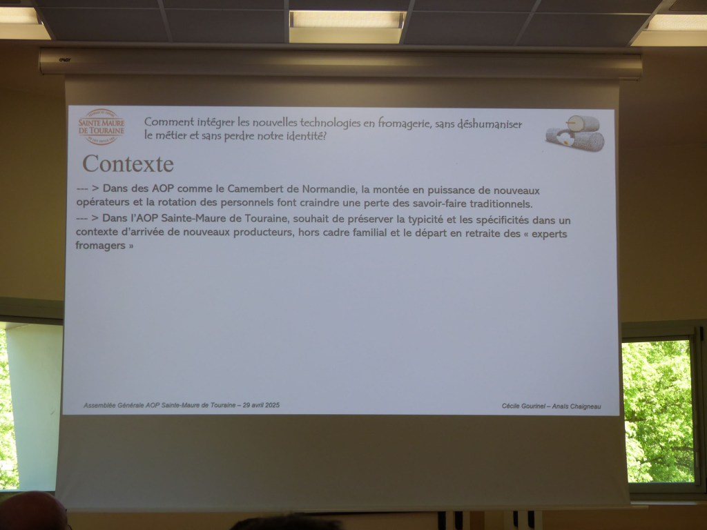 Une présentation dynamique orchestrée par le Président Benoit Limouzin, assisté de Cécile Gourinel, Responsable de l’Appellation et de Anaïs, en Master 1 à l’Université de Tours, en stage pour 4 mois, Patrick Blanchet, Trésorier et Julien Romain, Secrétaire. L’A.G. commence par les formalités habituelles, constatation du quorum, lecture du P.V. de l’année précédente, le rapport d’activité présenté alternativement par Benoit, Cécile et Anaïs est la synthèse d’une année 2024, au cours de laquelle, des projets de développement se sont mis en place.