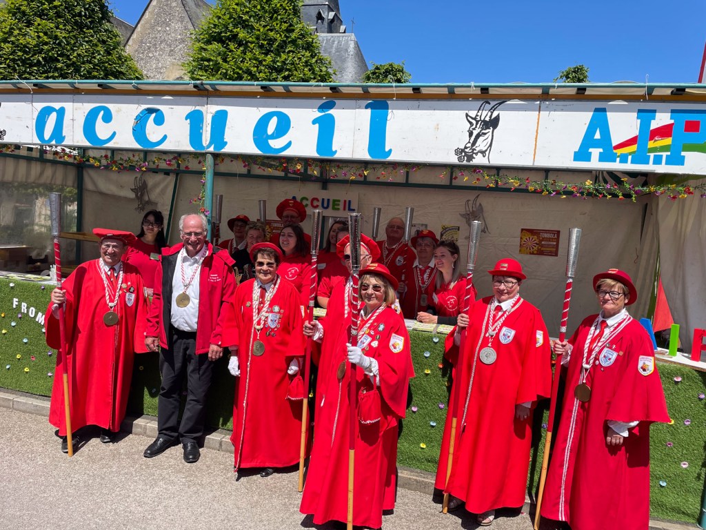 Accueillis par des sourires et des bravos chaleureux sous un soleil printanier, nous avons échanger sur notre célèbre Sainte Maure de Touraine AOP avec les producteurs, les habitants et les visiteurs venus d’un peu plus loin savourer notre si bon fromage. L’après-midi, c’est avec joie que nous avons intronisé 21 nouveaux chevaliers qui ont tous relevé avec succès le défi du goûter. La soirée s’est terminée par un repas convivial en musique. Nous retiendrons de cette journée l’ambiance chaleureuse, le plaisir des échanges et le régal des papilles. Mentions spéciales à la municipalité de Neuillé Pont Pierre et à l’AIP (Association InterProfessionnelle) pour l’organisation et l’accueil et à la Confrérie Saint Grégoire du Taste fromage de Munster pour leur venue.