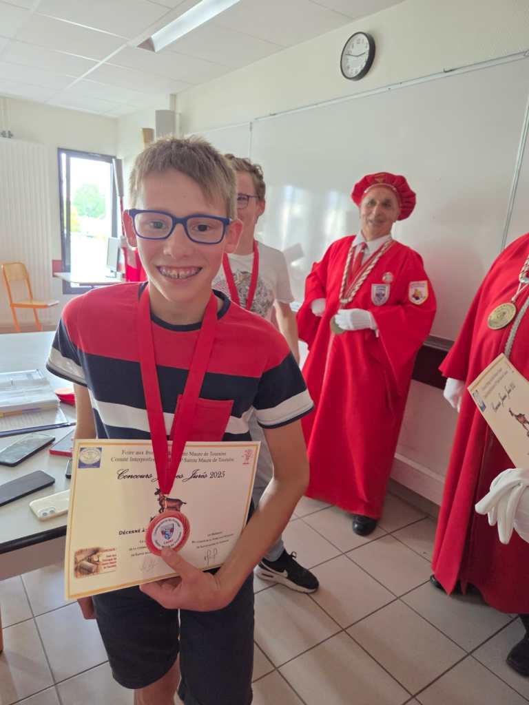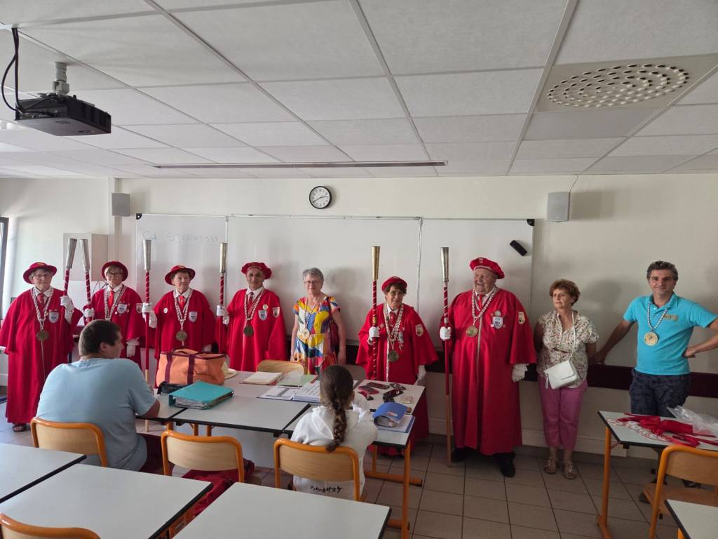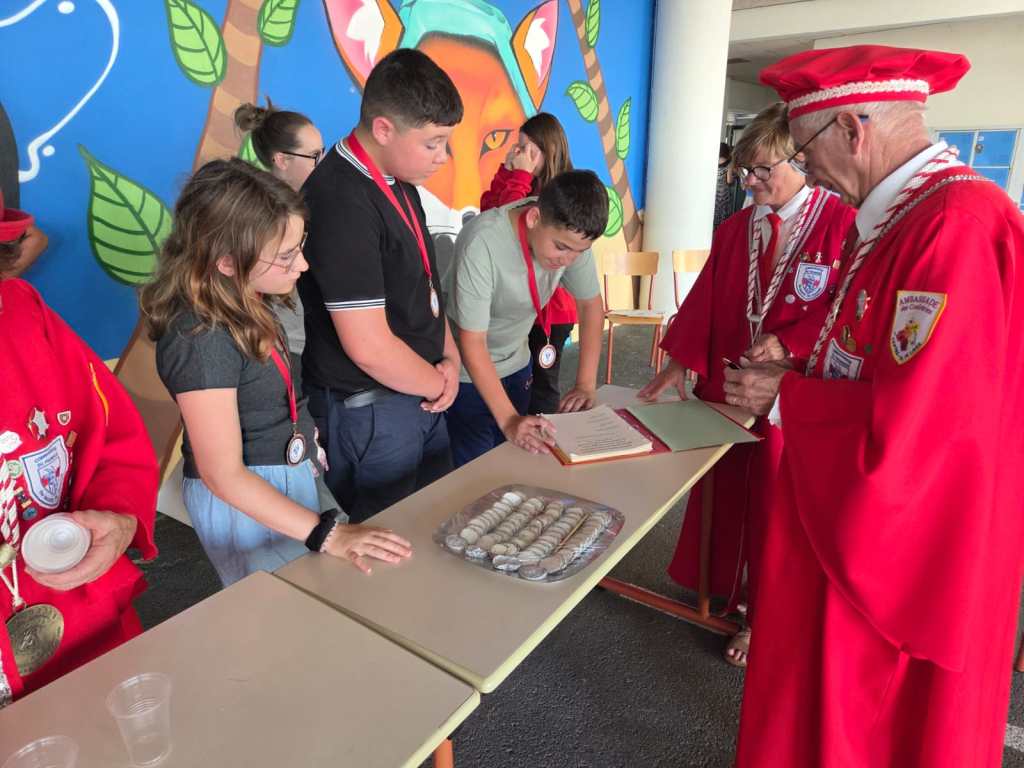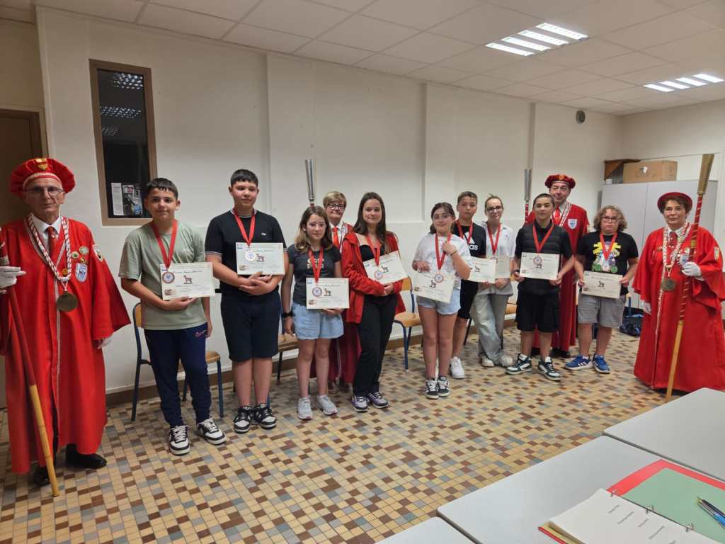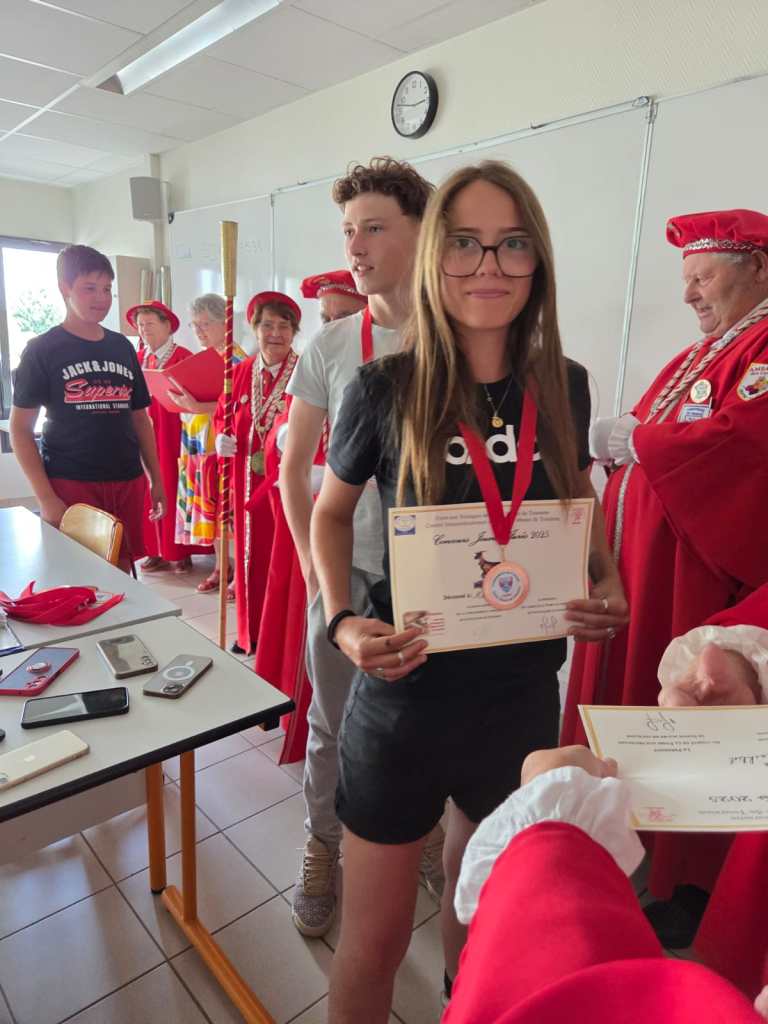 En partenariat avec le Comité de la Foire aux Fromages, la Commanderie du Fromage de Sainte-Maure de Touraine, les directeurs des collèges de Sainte-Maure de Touraine, de Descartes, de Nouâtre, de la MFR de Noyant de Touraine, nous avons initié les élèves volontaires à une formation de dégustation de notre fromage de chèvre : Sainte-Maure de Touraine AOP. Cette formation se déroule en 6 modules d’une heure réparties sur les derniers mois avant le concours du samedi 7 juin. Cette année, forte participation, nous avons eu 48 élèves en formation et 36 étaient présents au concours « Jeunes Jurés » .Les jeunes jurés ont été adoubés par le grand Maître, Madeleine De Loof, et ont reçu leur diplôme de cadet de la Commanderie, le 16 juin à Sainte-Maure de Touraine, le 19 juin à Descartes, le 23 juin à Noyant de Touraine, tous heureux et fiers de leur rôle d’ambassadeur pour la promotion de ce fromage qu’ils ont appris à connaître et à apprécier en fins connaisseurs. Dommage pour la cérémonie prévue à Nouâtre, le 1er juillet lors de leur fête de fin d’année annulée, faute à la canicule, mais nous irons à la rentrée pour leur remettre diplômes et médailles qu’ils ont bien mérité.
