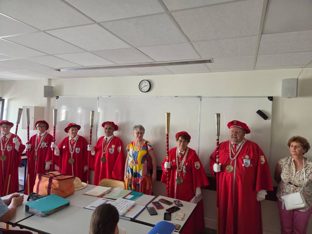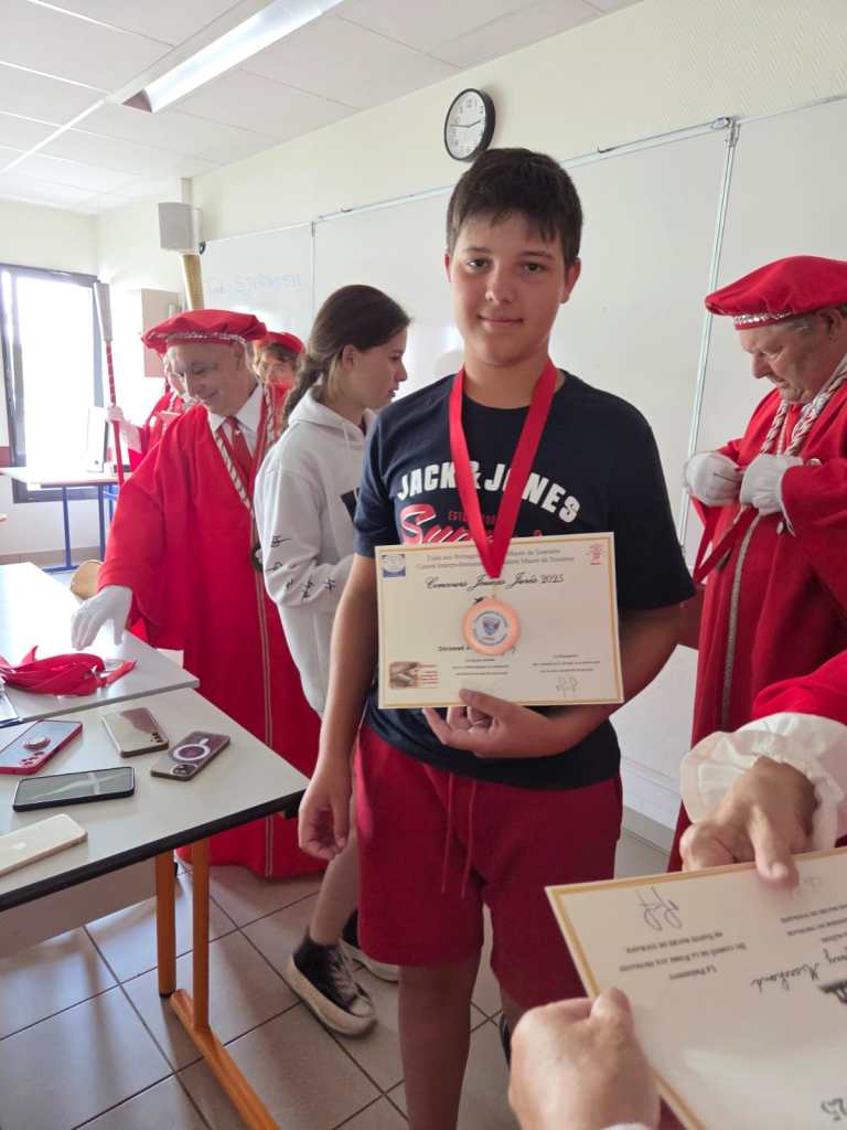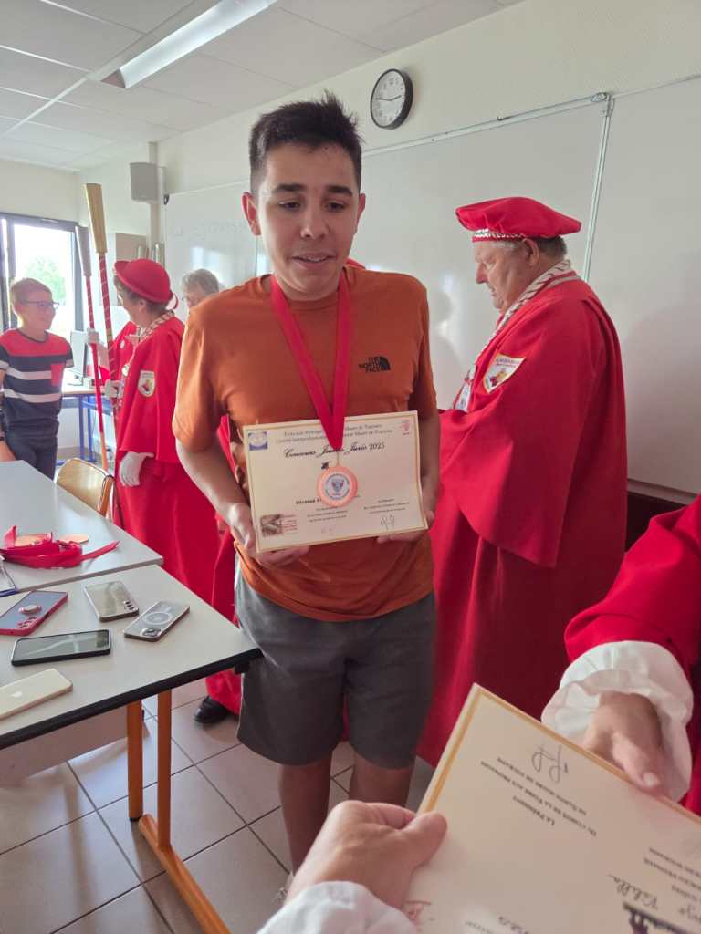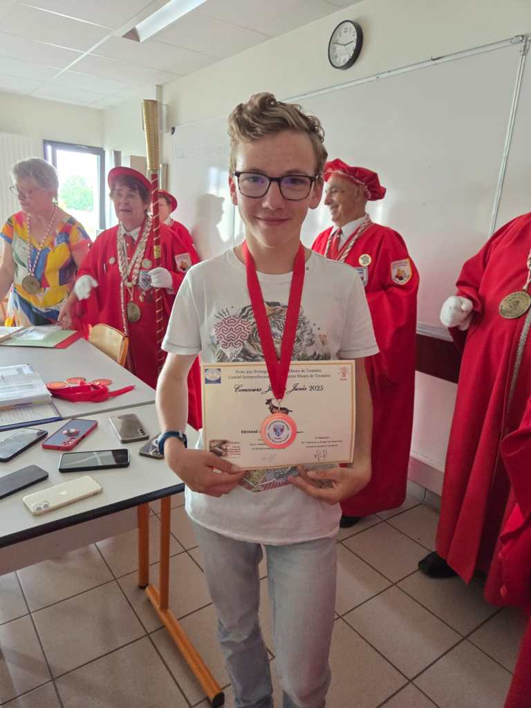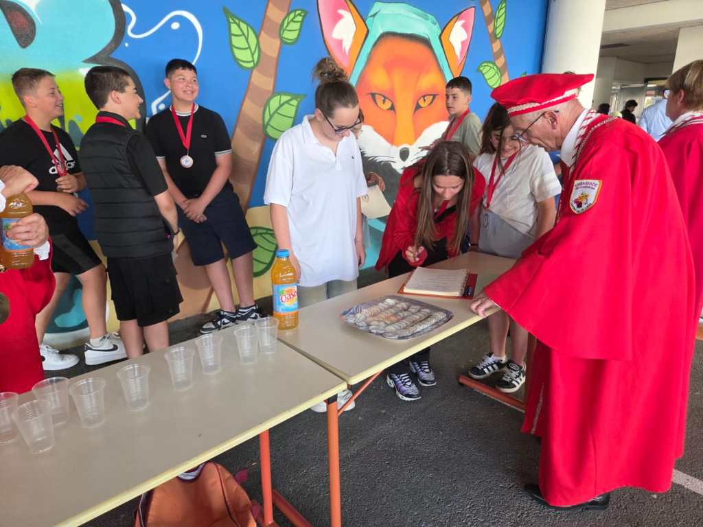 En partenariat avec le Comité de la Foire aux Fromages, la Commanderie du Fromage de Sainte-Maure de Touraine, les directeurs des collèges de Sainte-Maure de Touraine, de Descartes, de Nouâtre, de la MFR de Noyant de Touraine, nous avons initié les élèves volontaires à une formation de dégustation de notre fromage de chèvre : Sainte-Maure de Touraine AOP. Cette formation se déroule en 6 modules d’une heure réparties sur les derniers mois avant le concours du samedi 7 juin. Cette année, forte participation, nous avons eu 48 élèves en formation et 36 étaient présents au concours « Jeunes Jurés » .Les jeunes jurés ont été adoubés par le grand Maître, Madeleine De Loof, et ont reçu leur diplôme de cadet de la Commanderie, le 16 juin à Sainte-Maure de Touraine, le 19 juin à Descartes, le 23 juin à Noyant de Touraine, tous heureux et fiers de leur rôle d’ambassadeur pour la promotion de ce fromage qu’ils ont appris à connaître et à apprécier en fins connaisseurs. Dommage pour la cérémonie prévue à Nouâtre, le 1er juillet lors de leur fête de fin d’année annulée, faute à la canicule, mais nous irons à la rentrée pour leur remettre diplômes et médailles qu’ils ont bien mérité.