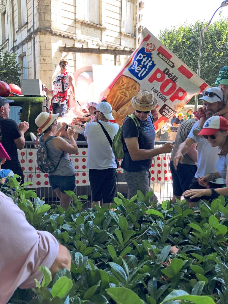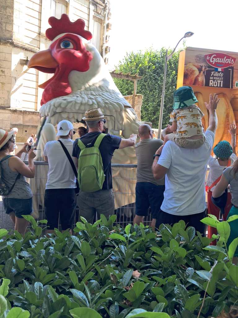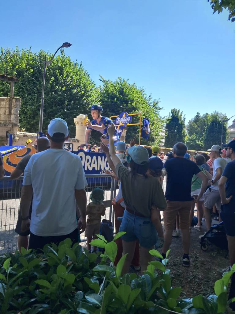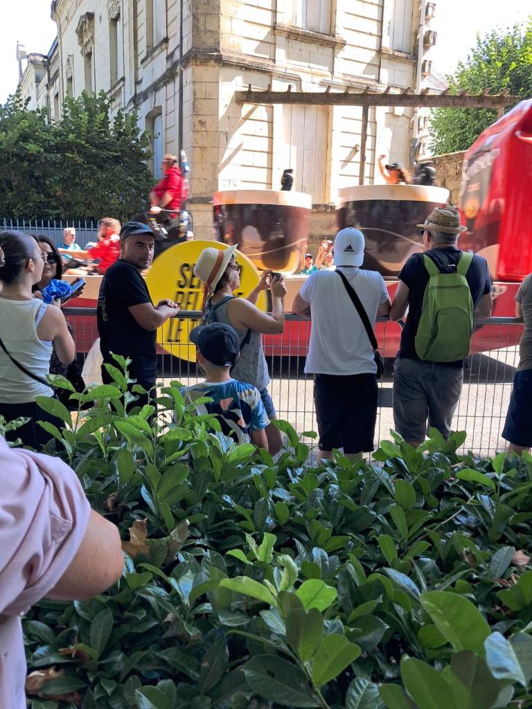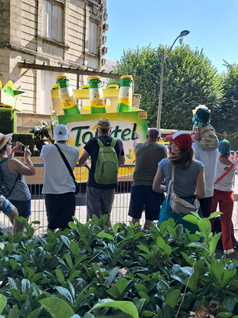 Le village officiel du Tour était installé sur la place Jeanne D’Arc mais il fallait des badges pour y accéder, le podium était visible pour tous les spectateurs du village festif. Au départ de la caravane, que de monde pour attraper les goodies jetés des 2 côtés de la traversée de Chinon, qui était vraiment en fête. Nous avons aussi retrouvé nos amis, Les Entonneurs Rabelaisiens. Après le départ des coureurs, le village a été parcouru par beaucoup de monde qui profitait de l’ombre et des animations très nombreuses, nous sommes repartis en milieu d’après midi en promettant de revenir pour la 4ème étape du tour de France féminin le mardi 29 juillet, étape Saumur-Poitiers qui traversera Chinon, l’Ile Bouchard.