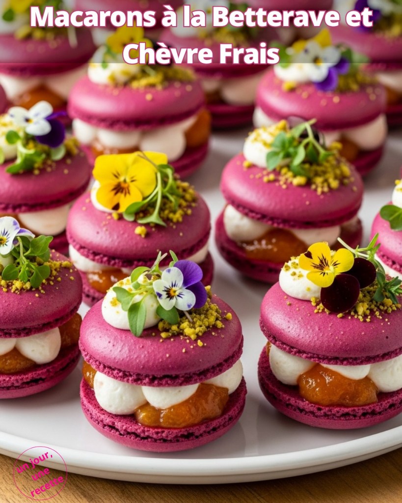 Une recette bluffante qui revisite le macaron classique en version salée ! Entre la coque légèrement sucrée, la garniture crémeuse au fromage de chèvre et la finesse de la betterave, ces petites merveilles allient esthétique et audace. Un vrai bijou culinaire pour épater vos convives !