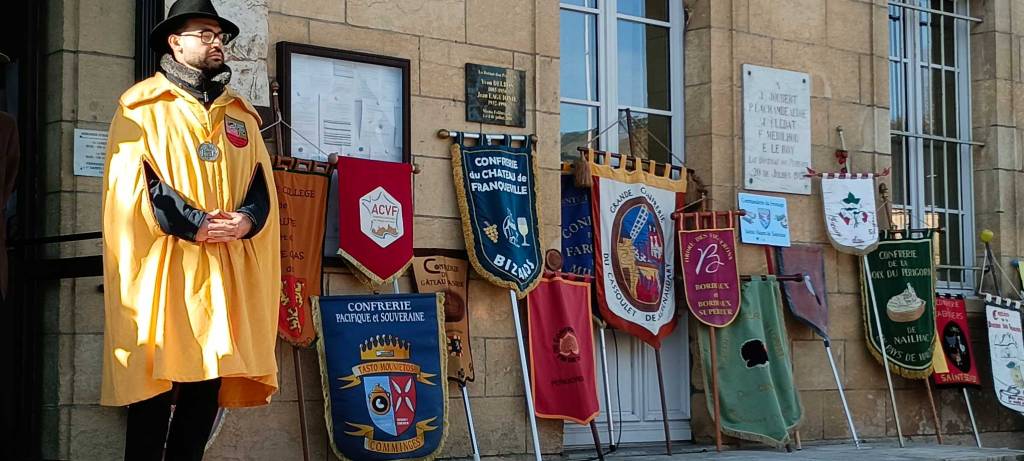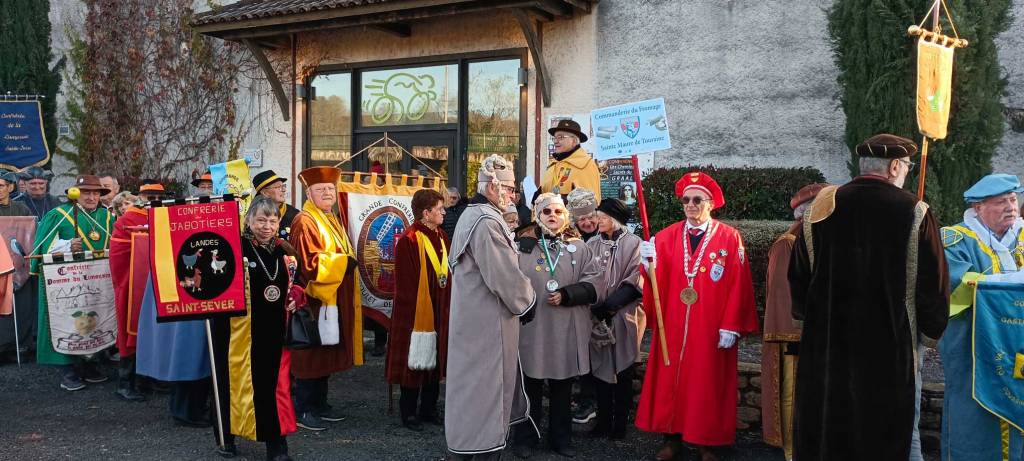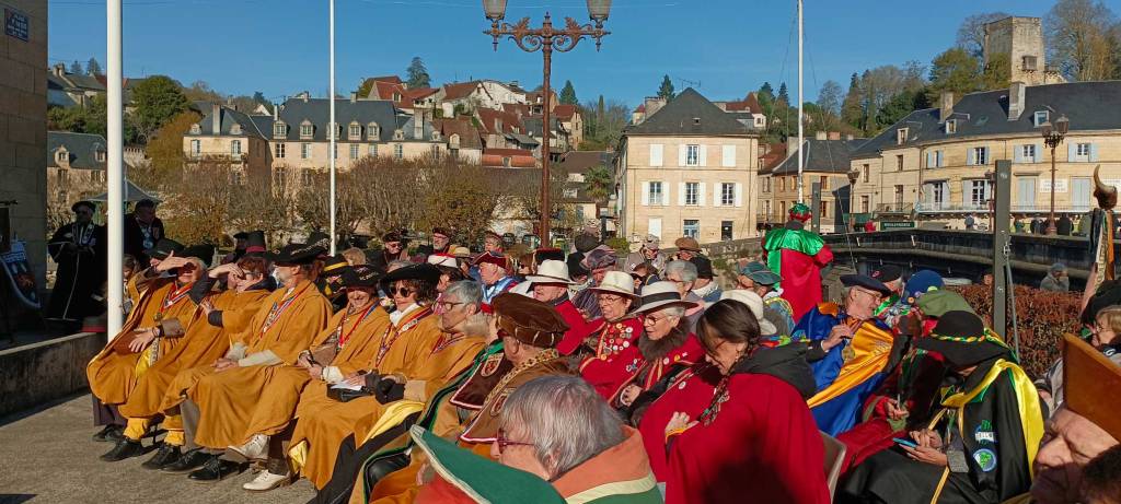Le lendemain RV à 8h30 à la salle des fêtes pour le petit-déjeuner et la mise en habits. Nous avons défilé à travers les rues de Montignac, animées par les stands de la foire de Ste Catherine, jusqu’à la mairie où quelques intronisations ont été faites (dont Marcel Laubigeau). Promenade à nouveau sur les stands et retour à la salle des fêtes où une bonne choucroute nous attendait. Repas agréable animé par des musiciens. La soirée s’est terminée par une bonne soupe à l’oignon pendant laquelle les Confréries basques nous ont régalés de leurs chants.