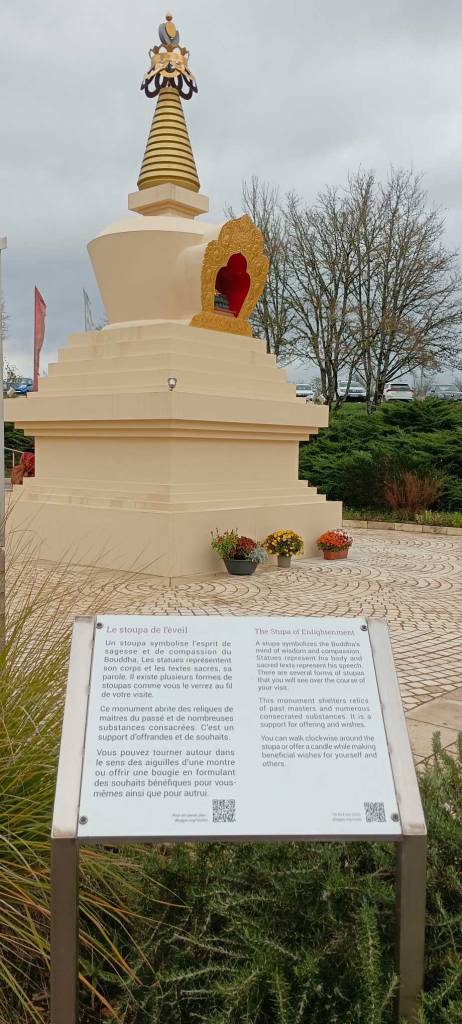 Le 22 novembre 9ème Grand Chapitre de la Confrérie du Miel et des Abeilles à Montignac Le vendredi après midi 21 novembre nous étions invités à la visite du Centre d’Etudes et de Méditation Bouddhiques de DHAGPO KAGYU LING (temple bouddhique) à St Léon s/Vézère, un des plus grand centre bouddhique d’Europe installé sur la côte de Jor en 1975. Haut lieu du Bouddhisme Tébétain en France le centre de méditation s’est agrandi avec plusieurs espaces dédiés à l’écoute, l’étude et la méditation. Lieux que nous avons visités. Le but de ce temple bouddhiste est de préserver l’enseignement du bouddha loin de son pays d’origine et de le populariser afin de le rendre accessible à tous. De nombreux séjours d’enseignement et de méditation y sont organisés. Après cette visite nous nous sommes retrouvés à la salle des fêtes de Montignac pour un diner où étaient présentes une vingtaine de confréries, en majorité du Sud Ouest. Pour le bonheur de tous nous avons fait déguster et découvrir notre Sainte Maure de Touraine.
