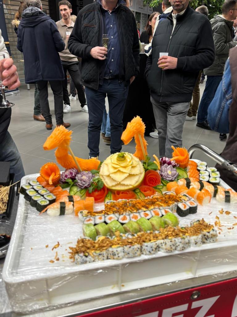 Après les discours et félicitations, un buffet excellent et bien garni a régalé les papilles de tous en se remémorant tout ce chemin parcouru pour réaliser de beaux projets par des personnes passionnées depuis toujours par leur profession. Nous avons aussi rencontré les parents qui avaient déjà un magasin intermarché entre 1965 et 1970 en Picardie et qui sont ravis de la réussite de leurs enfants,c’est vraiment une passion familiale .Nous en avons profité pour faire la promotion de notre fromage et surtout donner des explications sur cette paille gravée que beaucoup ignorent encore,cette paille gravée au nom du producteur assure indiscutablement la tracabilité du produit
