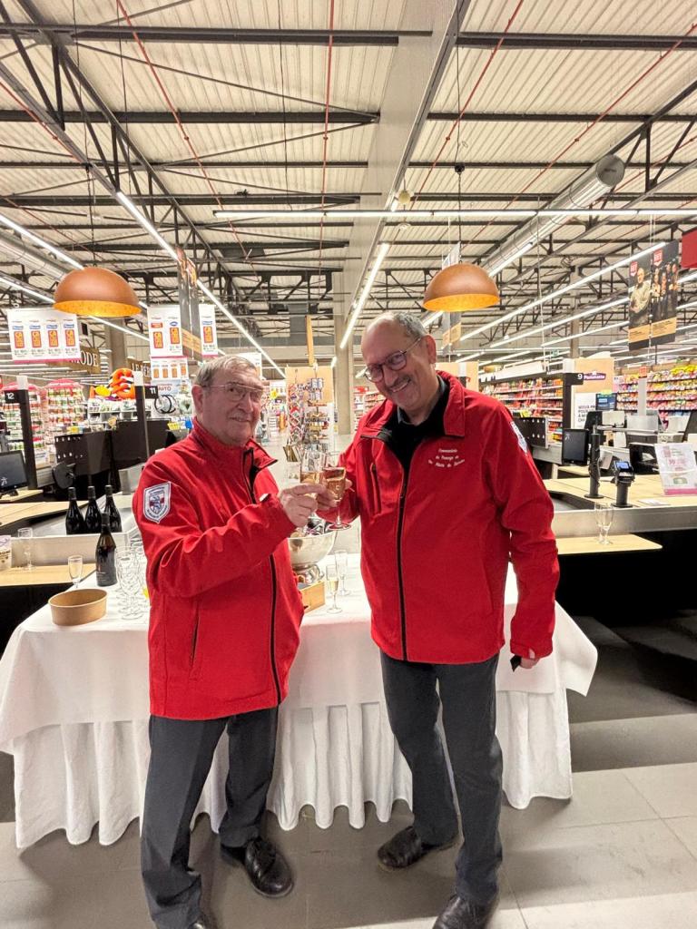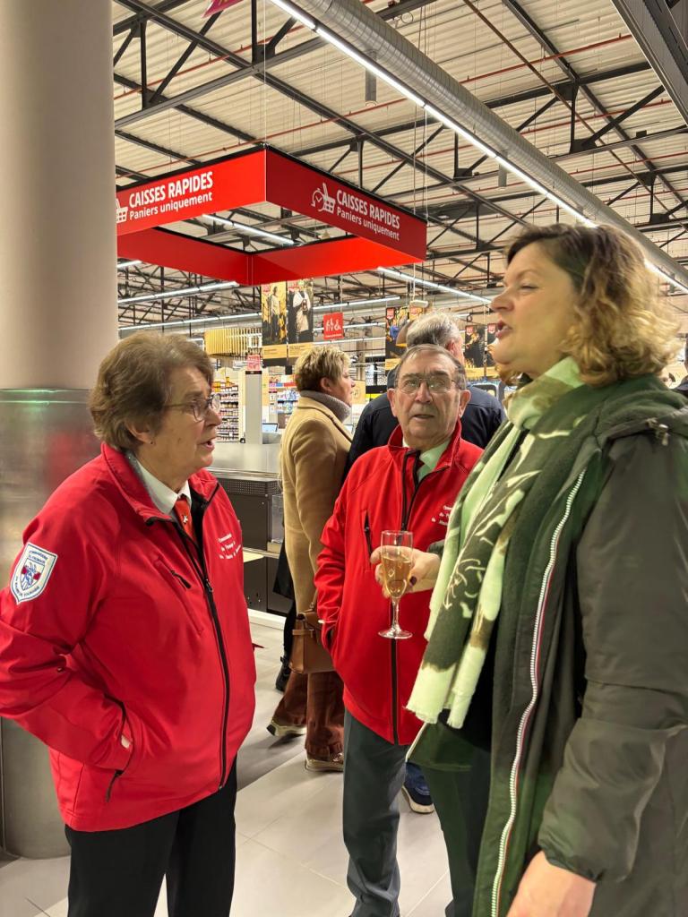 Lundi soir, Jean-André et Nadège, Patrice, Jean,Christine et moi-même avons été accueillis par M. et Mme De Fontenay suite à l’invitation pour l’inauguration de leur magasin entièrement rénové. La galerie marchande convenait très bien pour cet évènement car elle s’est remplie rapidement avec tous les invités ayant participé avec leurs entreprises par leur travail, le personne actif ou retraité d’Intermarché, beaucoup de fournisseurs, des clients, de la famille et des amis. M. De Fontenay a remercié chaleureusement tout le monde, les entreprises pour leur savoir-faire, sa banque pour l’acceptation de financer ce gros projet ,les clients, la commanderie du fromage de chèvre, son personnel pour le travail fourni et leur adaptation à changer sans cesse les rayons au fur et à mesure de l’avancement des travaux et aussi à renseigner les clients qui se trouvaient perdus et qui mettaient plus de temps à faire leurs courses mais sont restés fidèles à l’enseigne malgré les inconvénients pendant ces travaux de rénovation.Mais le résultat est au rendez-vous, du sol au plafond, de belles allées pour circuler, matériel moderne, etc.