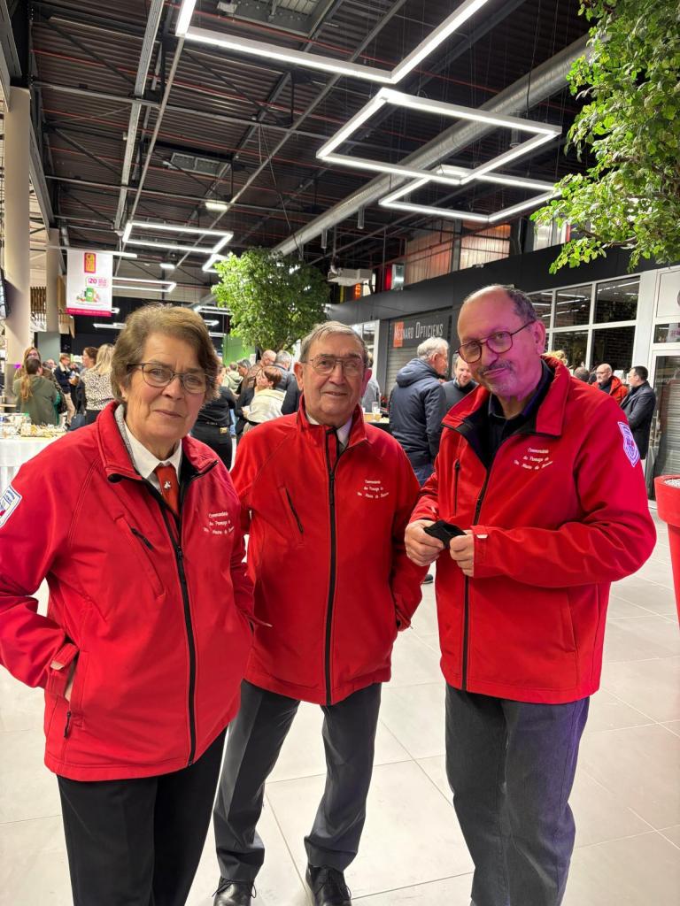 M. le Maire, Michel Champigny a remis la médaille de la ville à M. et Mme De Fontenay pour les remercier de tout ce qu’ils font pour créer de nombreux emplois et faire travailler les producteurs locaux le plus possible parmi lesquels les producteurs de fromage de chèvre car le fromage de chèvre AOP Sainte-Maure de Touraine est mis à l’honneur et bien représenté dans le magasin. Après le discours de félicitations de M. Le député Laurent Baumel pour leur travail et leur engagement depuis toujours dans la filière Intermarché et développer la vente au maximum de produits achetés dans un rayon de 50 km, M. Meunier directeur de l’intermarché de Veigné à remis l’épée des Mousquetaires à Mme De Fontenay. pour remercier le couple qui depuis 2008 oeuvre sans cesse pour toujours améliorer ce point de vente très utile dans nos campagnes.