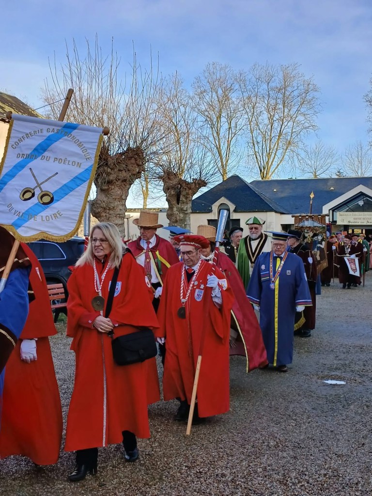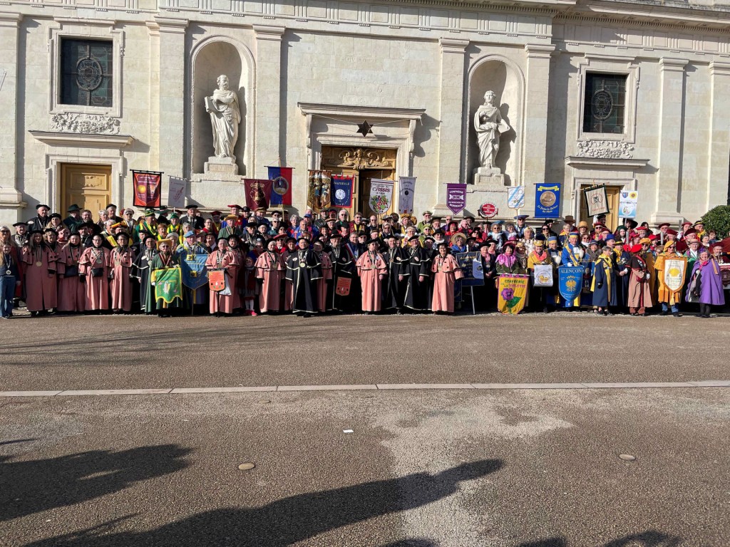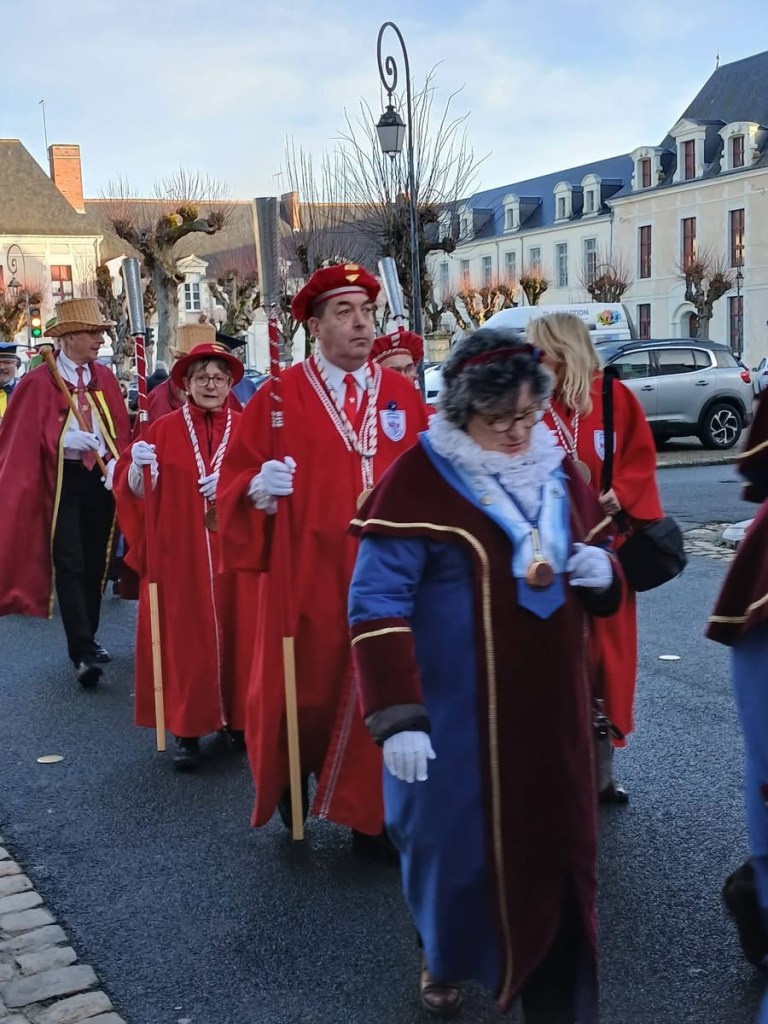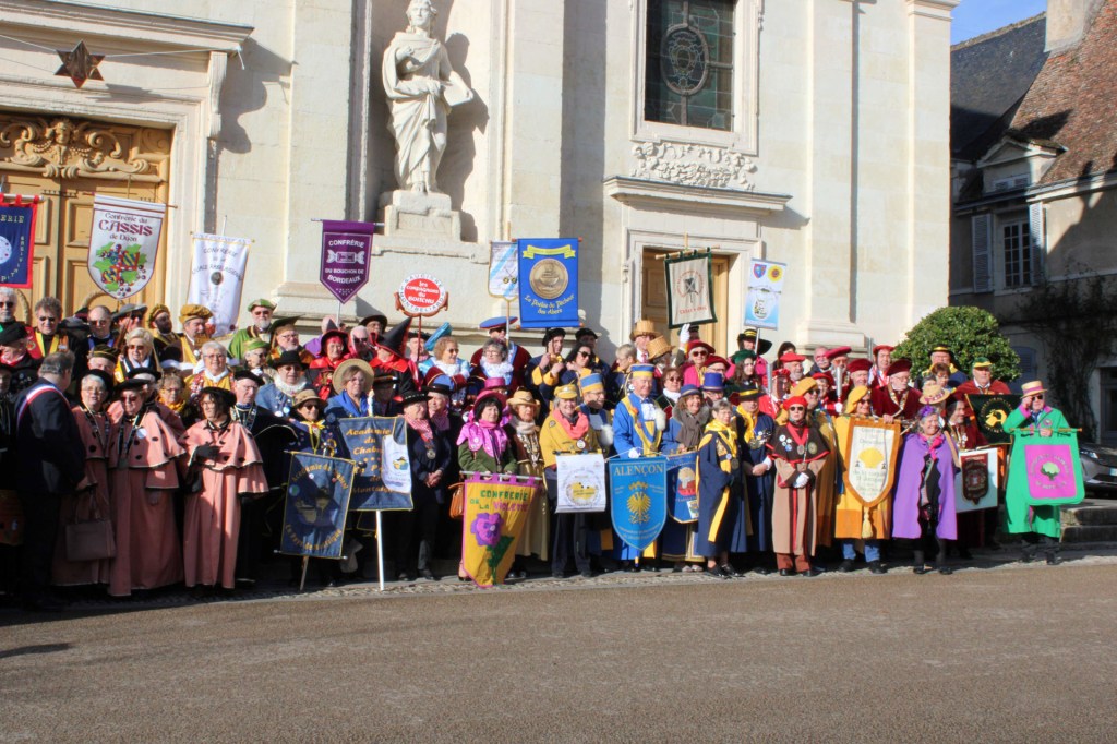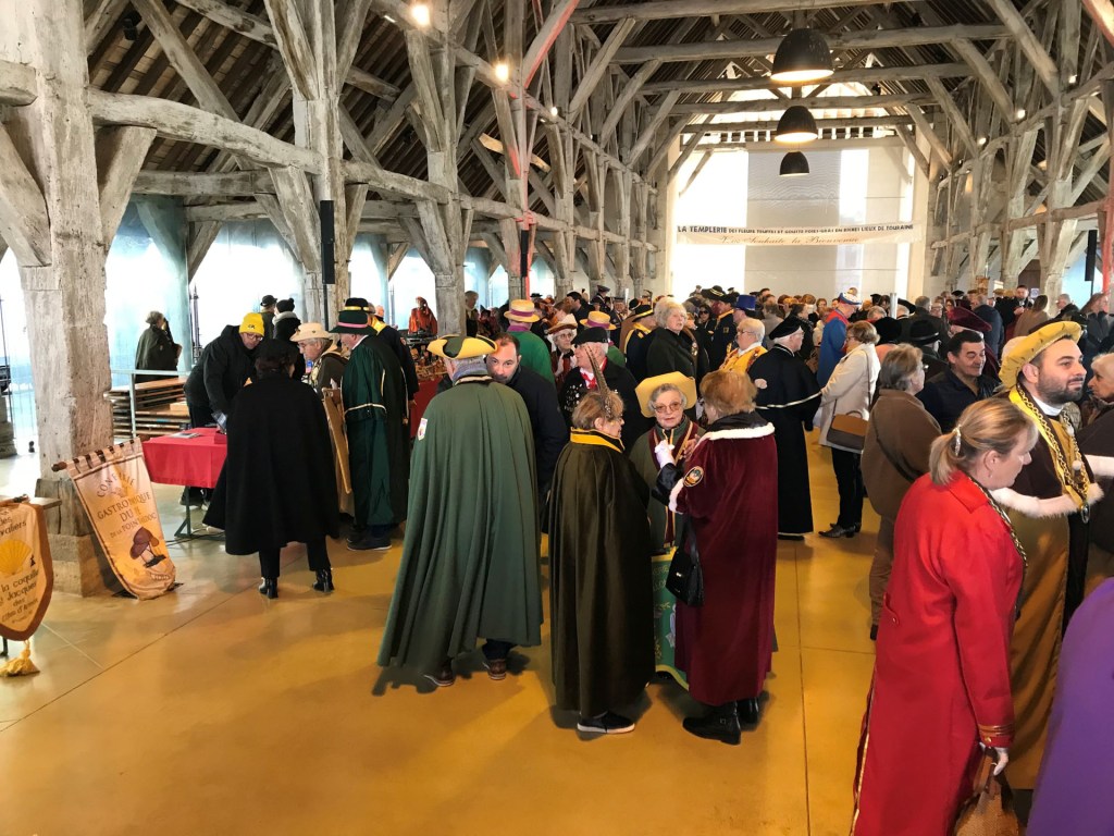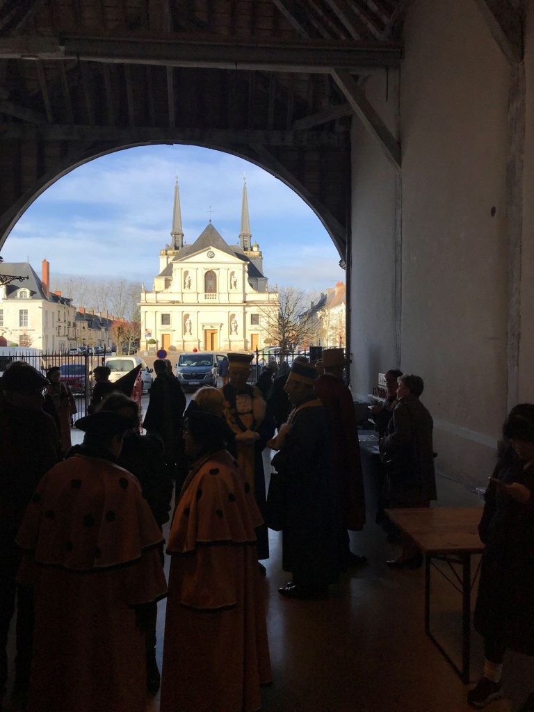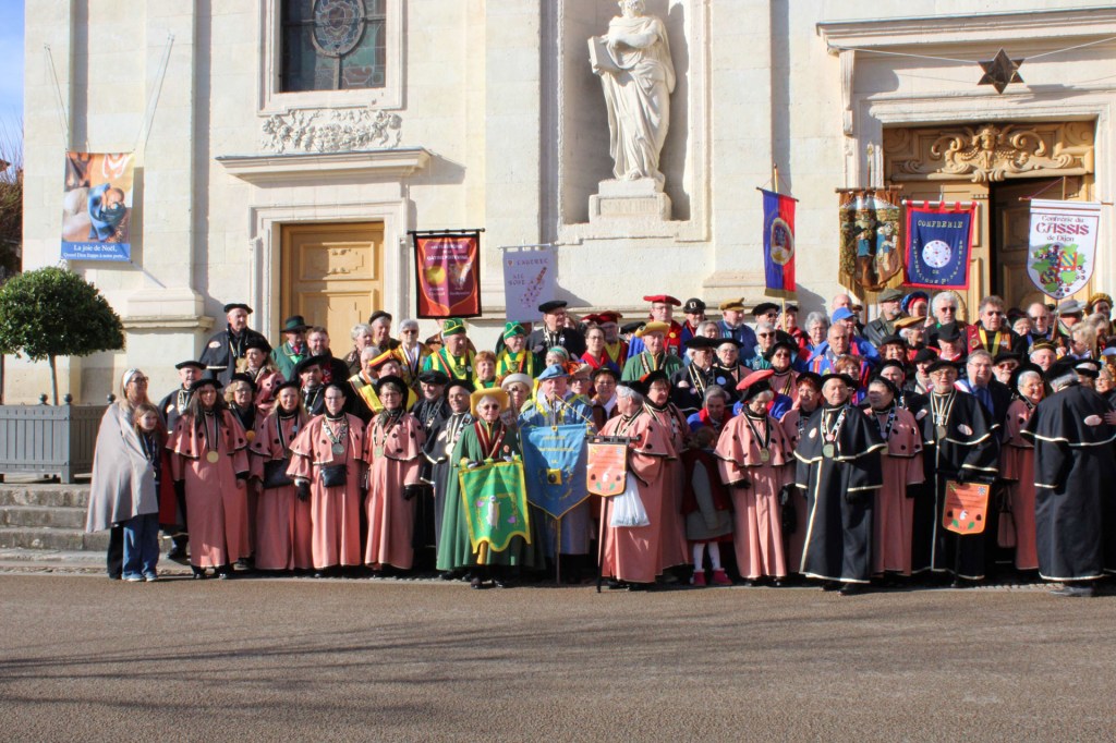 Samedi 7 février, nous nous sommes retrouvés, Martine, Jean L. et moi aux côtés de notre consœur tourangelle, la Templerie des Fleure-Truffes et Gouste foie Gras au cœur de la cité richelaise, parmi 60 autres confréries, venues des quatre coins de France mais également de Belgique. Après avoir revêtu leur tenue d’apparat, les dignitaires des confréries vineuses, gastronomiques ou gardiennes des traditions et du savoir-faire artisanal ont défilé sur la Voie Royale qui s’inscrit dans le grand plan d’urbanisme mené par le Cardinal à partir de 1631. Le cortège a investi les halles, à l’heure de l’ouverture du marché annuel aux truffes. Après y avoir humé « les vénérées princesses » – surnom donné aux truffes par la célèbre femme de lettres française Colette –, un rafraîchissement fût servi accompagné de beurre truffé, de beurre au safran tourangeau et de brunes confitures, de canard cette fois-ci. Ces agapes permettant d’émoustiller encore un peu plus les papilles de chacun avant de poser pour la photographie souvenir sur le parvis de l’église Notre-Dame.