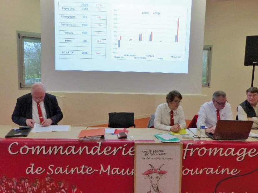 Après avoir constitué le Bureau de l’Assemblée, la présentation des différents rapports d’activités par Christine, Philippe, Jackie, qui ont commenté devant une assistance très intéressée le diaporama préparé par Philippe à l’écran. Compte rendu des Sorties (65 en 2025), des Evénements (27), des Chapitres exceptionnels (11), ont mis en évidence l’implication des 45 Dignitaires, de leurs conjoints pour faire la promotion de notre « Fabuleux » Fromage, partout en France, en Belgique, parfois au Portugal.