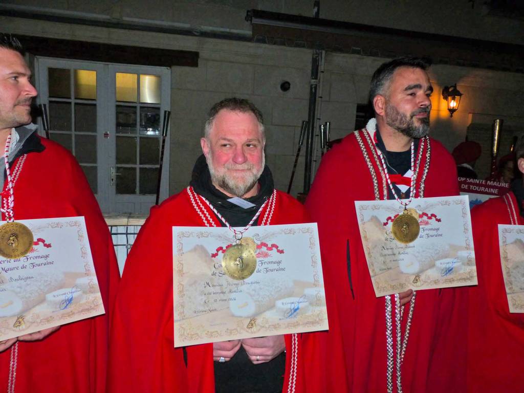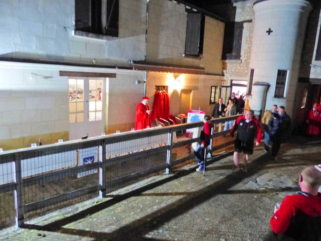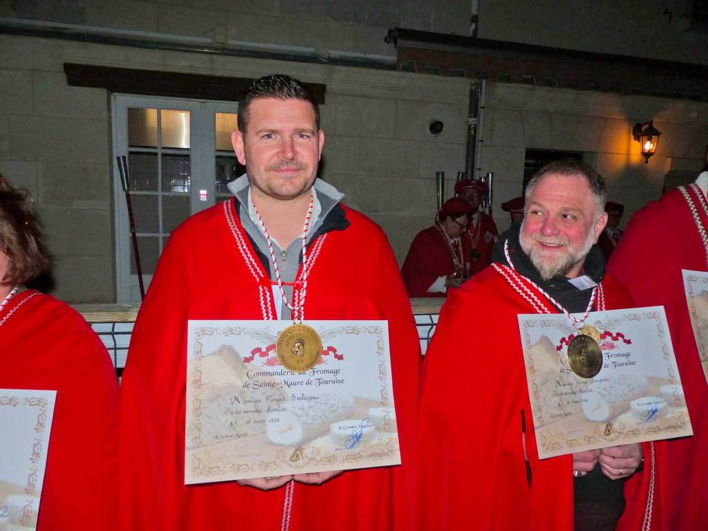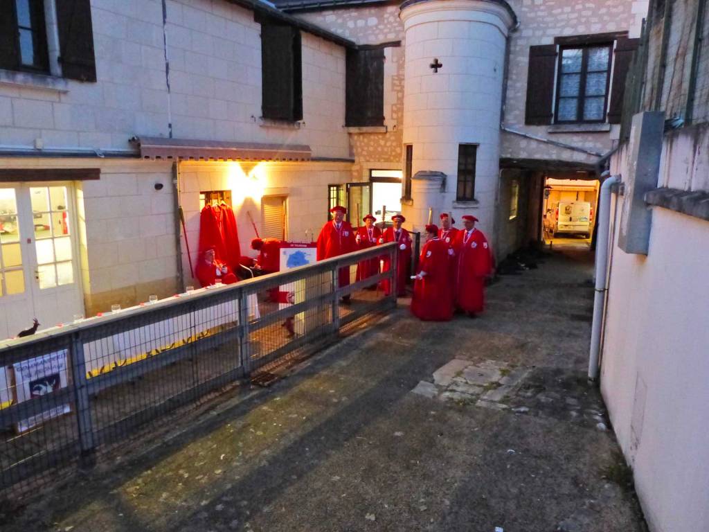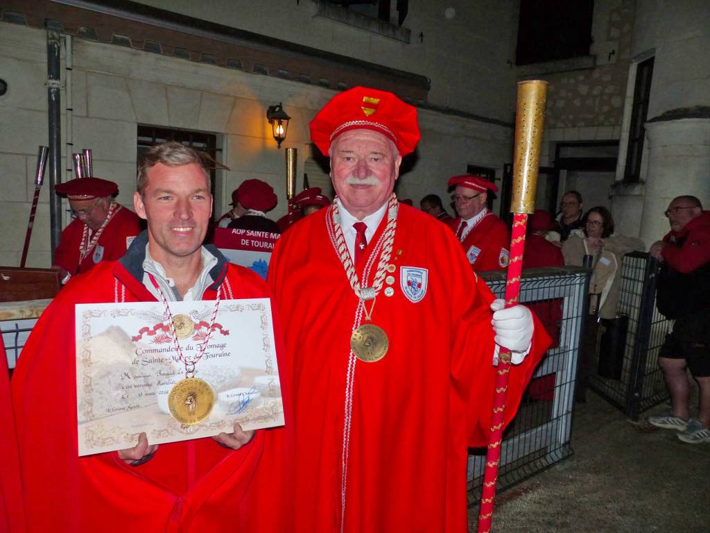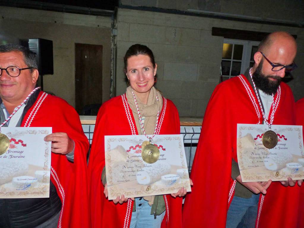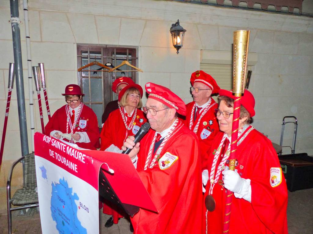 Le Grand Fromager Christine Dubois donne les indications spécifiques des fromages à déguster, en commençant par le demi-sec et terminant par le sec pour découvrir toutes les subtilités de ce pur produit du terroir. Le Grand Echanson, Jean Ligeard commente ensuite les vins qui accompagnent cette dégustation, Chinon pour les uns, Vouvray pour les autres. Les assiettes et les verres étant vides, les impétrants sont de nouveau appelés pour être adoubés Chevaliers par notre Grand Maitre, médailles et diplômes leur sont ensuite remis pour une dernière photo et la conclusion de Madeleine :