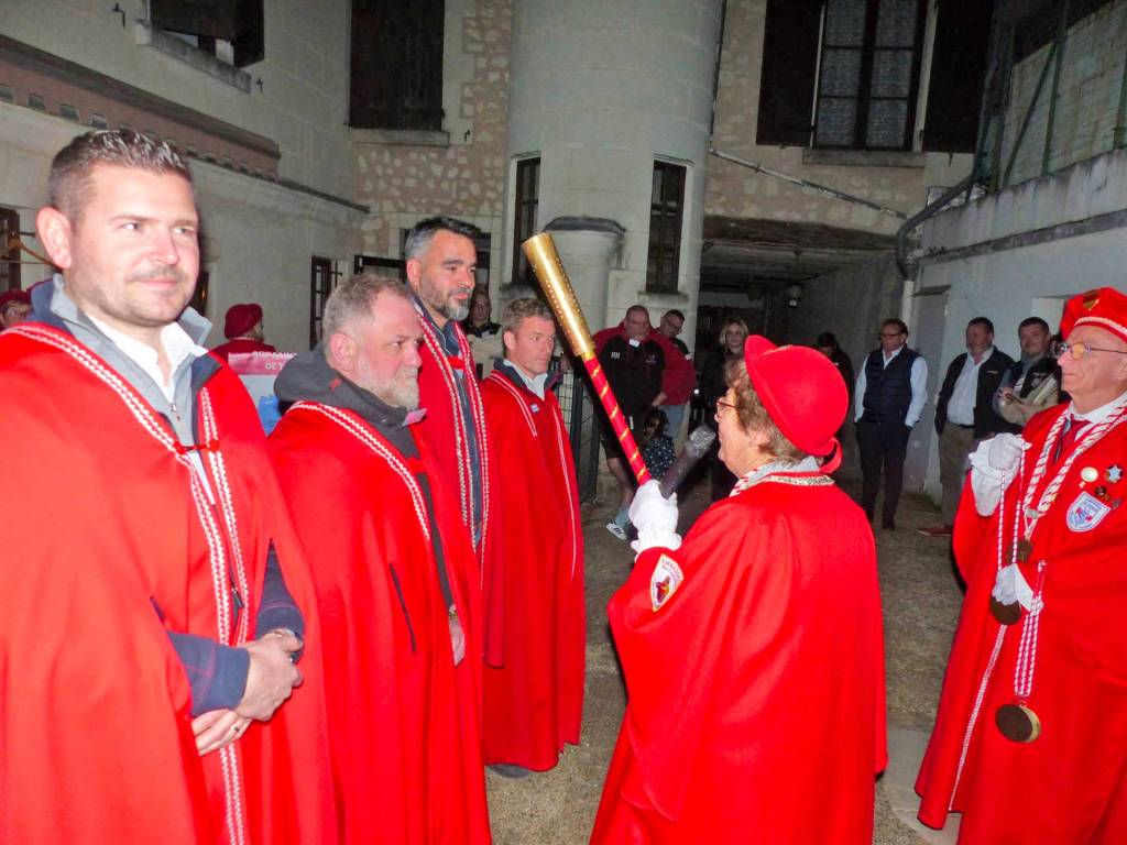 La Commanderie s’est adaptée à l’espace de la terrasse pour un cérémonial ouvert par la Grand Maitre Madeleine De Loof, dont les principaux acteurs ont été appelés par Antoine Caillault, sous les applaudissements chaleureux de leurs supporters. Tous se sont prêtés de bonne grâce, avec le sourire, au cérémonial, écoutant attentivement le texte d’initiation prononcé par notre Vice Grand Maitre Gérard Dubois et qui se termine par la prestation de serment « Je m’engage », qui doit être prononcé avec conviction.
