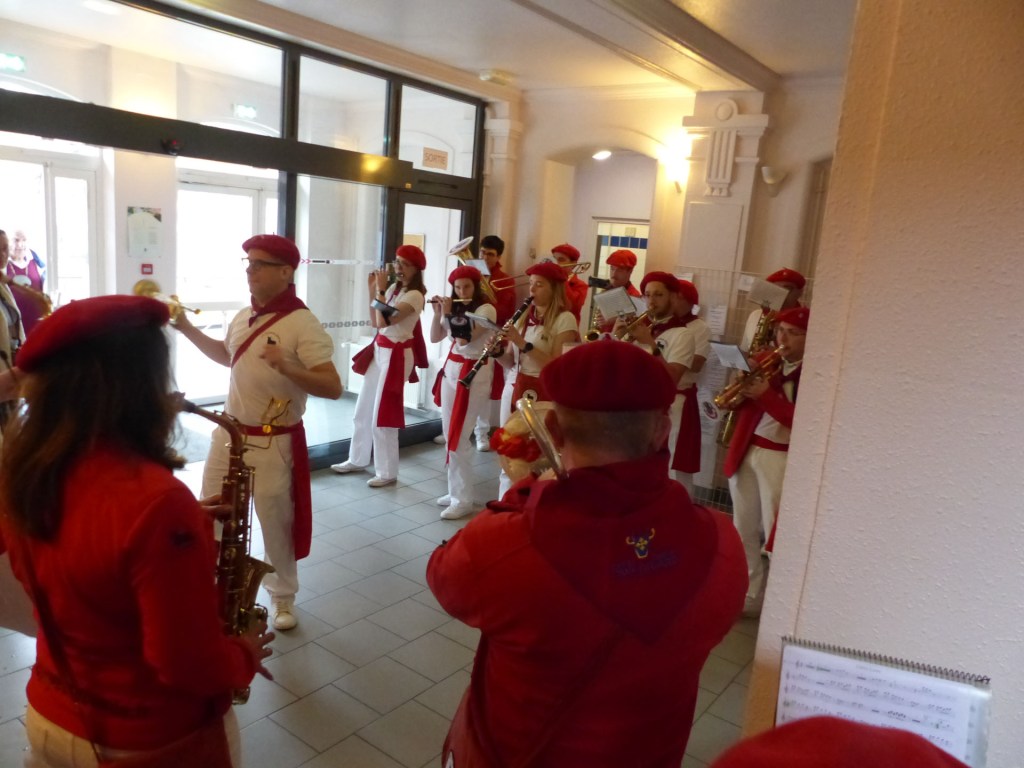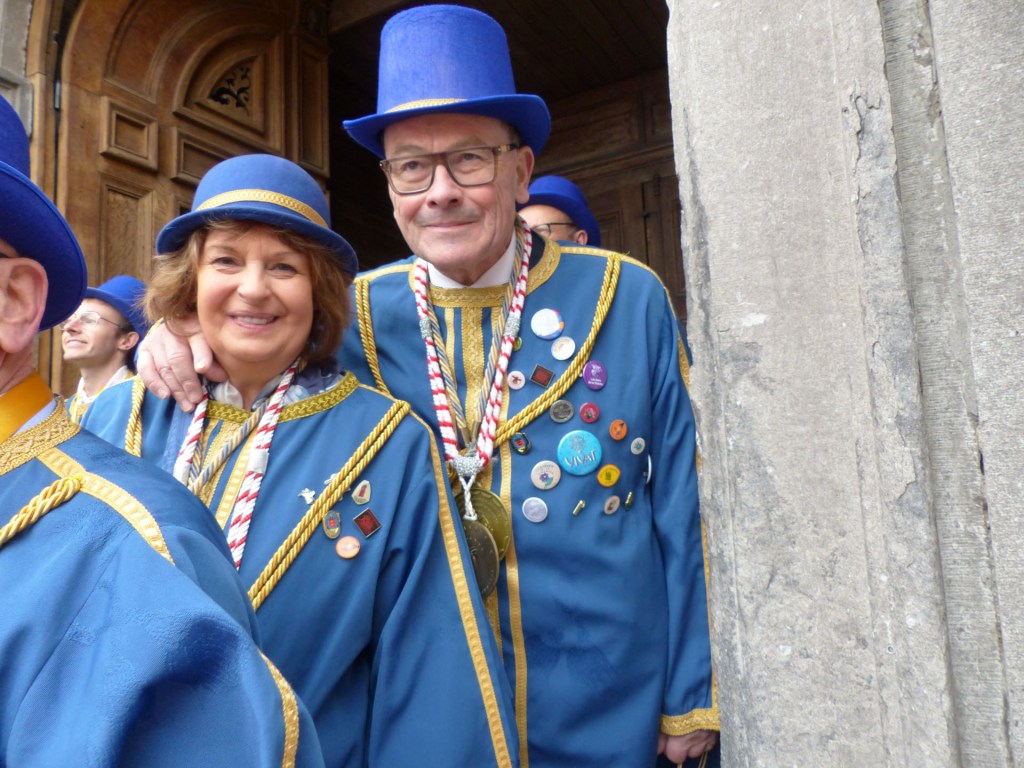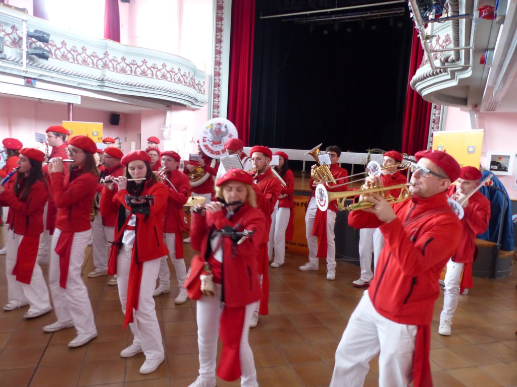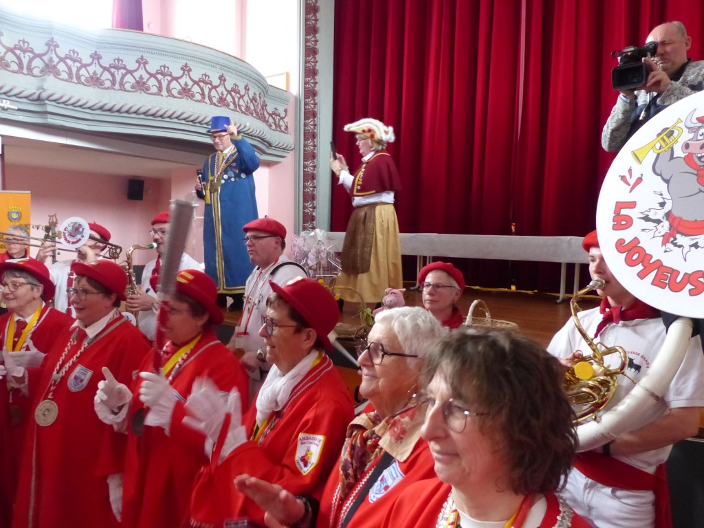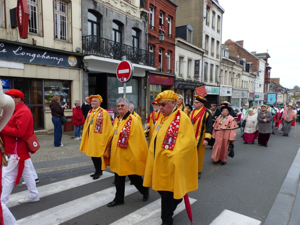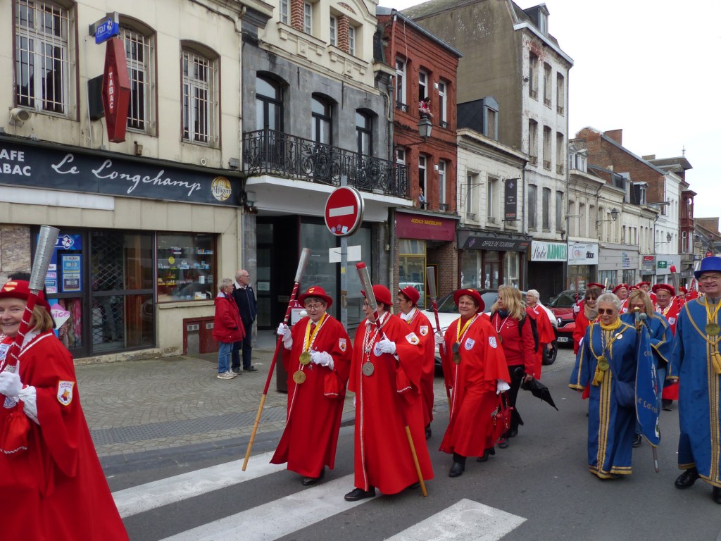 Innovation appréciée et plébiscitée par les Confréries présentes samedi soir 4 avril, Un buffet de produits locaux, servi au « Carré des Arts », tenu pas le traiteur Marc Fossez, rassemblait les Confréries arrivées pour un moment de convivialité, de partage de dialogue, faire connaissance, renouer des liens avec des Confréries de France, de Belgique, en allant des uns aux autres en toute tranquillité. Un moment très réussi. Dimanche matin, dans la bonne tradition Confrérique, les Confréries sont accueillies au Théâtre René Ledieu, par la Banda, jeune et joyeuse, tonique et dynamique qui va nous accompagner jusqu’au Repas en faisant une HOLA à l’adresse des 2 Commanderies, Sainte Maure de Touraine, Marraine, La Chaude Andouille Filleule, pour un solide petit déjeuner, (car la journée sera longue). Le groupe de Sainte Maure de Touraine compte 23 délégués, dont notre Officier Sonneur Pascal, qui apportera son concours de soliste trompette à Loïc, organiste de l’orgue de l’Abbatiale St Martin, pour la Messe de Pâques.