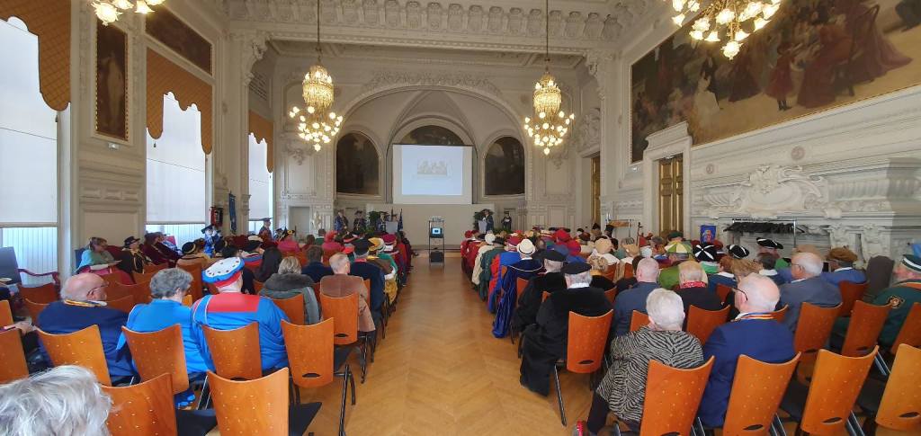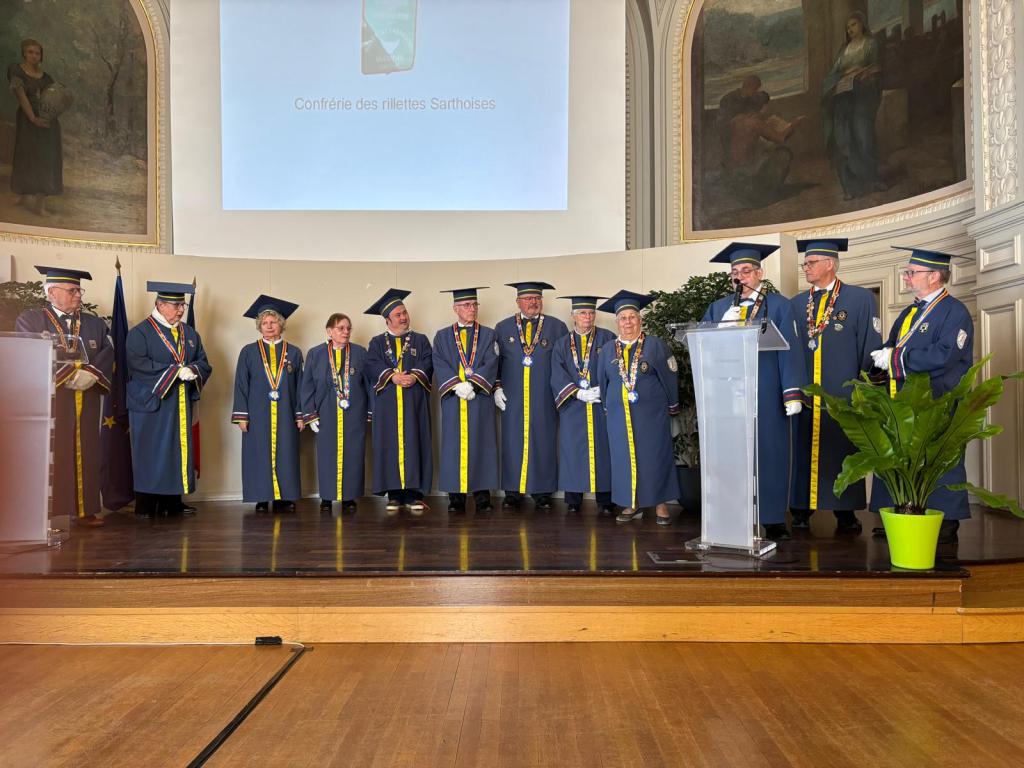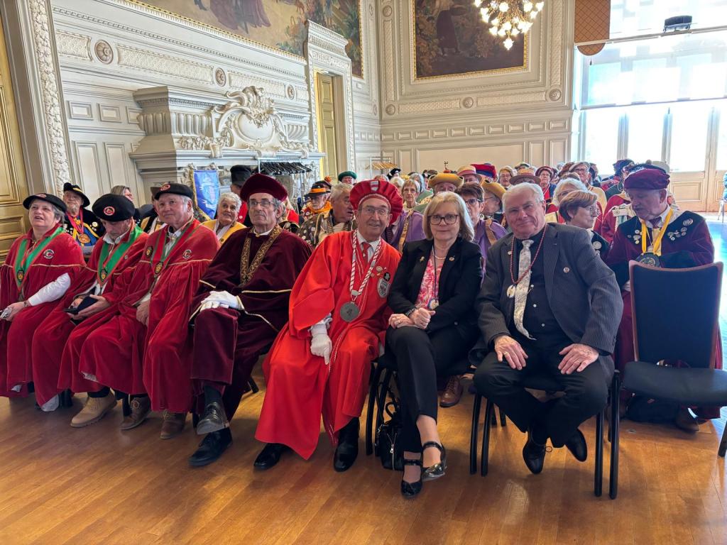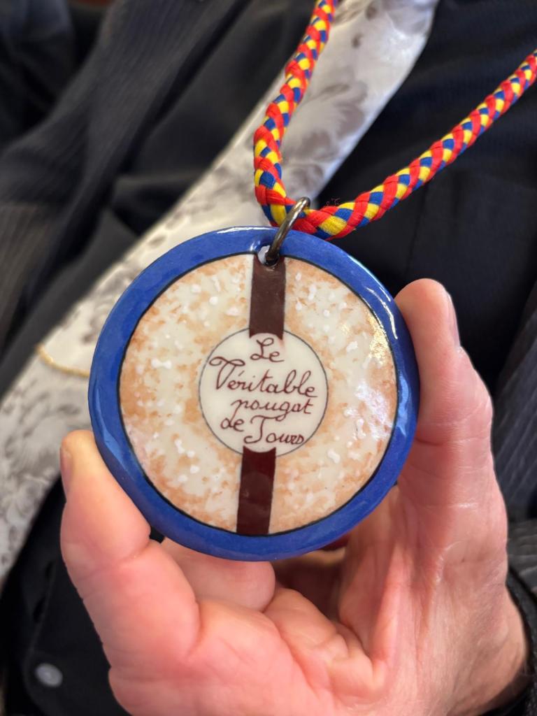 À 11h, dans la salle des mariages de la mairie, s’est déroulée la présentation officielle des 56 confréries présentes. Chacune a eu l’occasion d’annoncer la date de son grand chapitre, avec une mention particulière pour les 9 confréries présentes pour la toute première fois, témoignant du dynamisme et de l’attrait grandissant de cet événement. La cérémonie s’est poursuivie avec l’intronisation de 17 nouveaux membres. Ce moment solennel s’est accompagné d’une dégustation du véritable nougat de Tours, sublimé par un verre de Vouvray demi-sec provenant des caves Cathelineau, offrant un accord mets et vin particulièrement réussi.