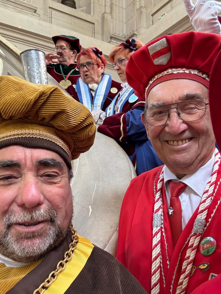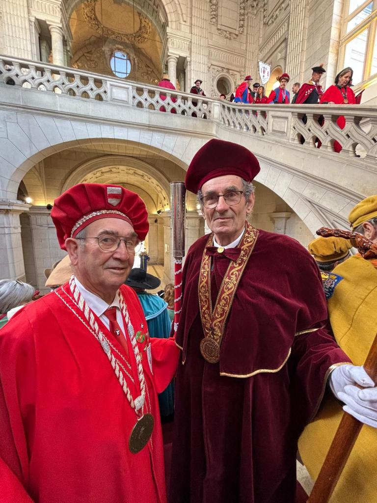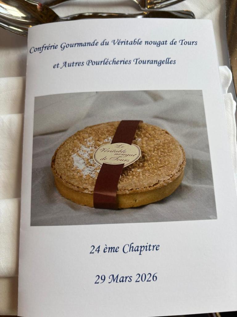 Jean LIGEARD et moi même , nous nous sommes rendus le dimanche 29 mars 2026 au 24ᵉ chapitre de la Confrérie Gourmande du Véritable Nougat de Tours, une journée riche en traditions, en convivialité et en gastronomie. Dès 9h, les confréries invitées ont été chaleureusement accueillies à la mairie de Tours autour d’un petit déjeuner généreux, mêlant saveurs sucrées et salées. Ce moment convivial a permis aux participants d’échanger et de débuter la journée dans une ambiance chaleureuse. À 10h, place à la mise en habits des confréries, suivie des traditionnelles photos de groupe, immortalisant cette rencontre haute en couleurs et en costumes .