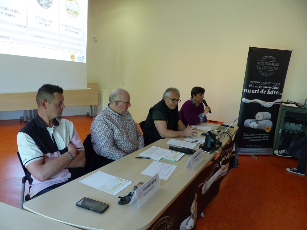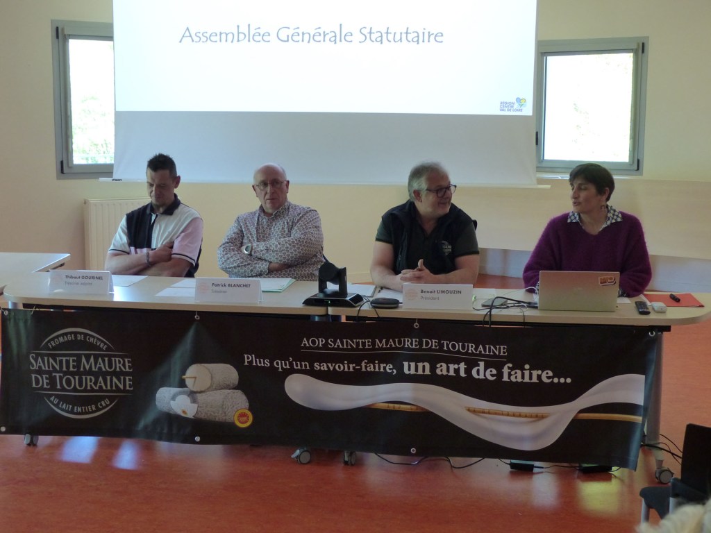 Le Président Benoit Limouzin, entouré de Patrick Blanchet, Trésorier, Thibaut Gourinel, Trésorier adjoint ont conduit cette A.G. Les rapports techniques ont été développés par Cécile Gourinel. En présence de Reynold L’Hermine, Maryline Nonet, respectivement 1er et second adjoint, excusant Mme Annïck Richard, Maire, ont tenu à témoigner leur intérêt et leur soutien à la filière A.O.P. Sainte-Maure de Touraine, produit phare de notre territoire. M. Bruno Bois, Président de la Chambre d’Agriculture est également intervenu pour souligner la collaboration avec le Comité A.O.P.